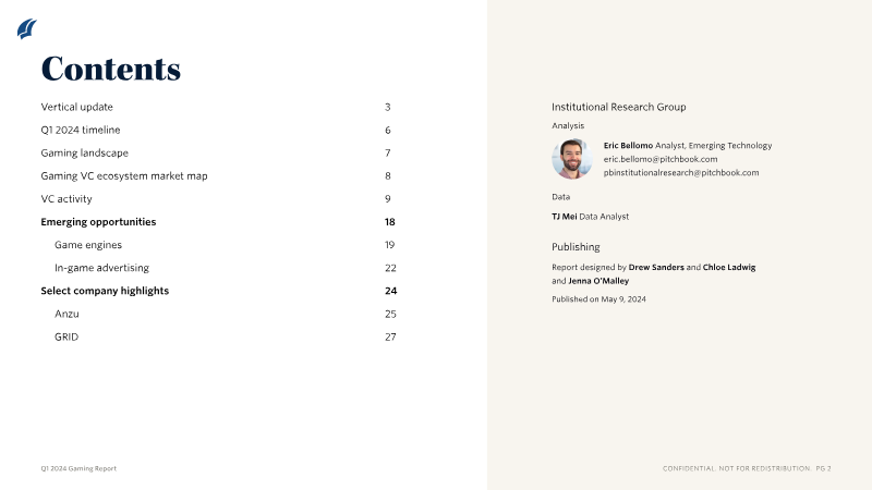 The analysis evaluates venture‑capital dynamics and emerging opportunities within the global gaming sector during the first quarter of 2024. By aggregating data from PitchBook’s private‑market database, the study quantifies investment activity, maps ecosystem participants, and highlights notable company developments, aiming to inform investors about the market’s current trajectory and future potential.
