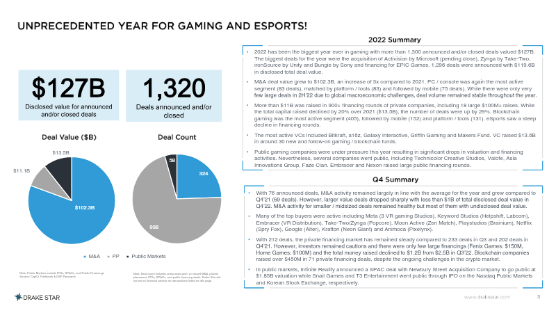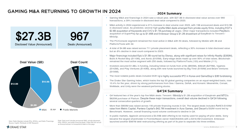 The analysis focuses on the accelerating consolidation of the worldwide gaming ecosystem, emphasizing the unprecedented scale of mergers and acquisitions (M&A) and private‑placement financing observed in the final quarter of 2025 and projecting a further surge into 2026. In Q4 2025, a record‑high 43 announced transactions totaled $83 billion, highlighted by Netflix’s $82.7 billion purchase of Warner Bros.’ avatar‑technology portfolio and Kakao Games’ $78 million strategic stake aimed at expanding its PC and console footprint. Private‑placement activity complemented the M&A wave, with 137 deals raising $1.5 billion, underscoring heightened investor appetite for growth‑stage gaming ventures. The data reveal a clear shift toward acquisition of immersive‑technology assets, particularly avatar and metaverse‑related capabilities, as major platform operators seek to deepen engagement across streaming and interactive media. Geographic distribution remains truly global, with North American and Asian firms leading both deal origination and capital provision, while sovereign wealth entities such as the Public Investment Fund (PIF) emerge as influential buyers. The breadth of activity spans traditional console and PC publishers, mobile‑first developers, and emerging gaming‑tech startups, indicating a convergence of content, distribution, and underlying technology. Looking ahead to 2026, the outlook anticipates a sharp acceleration in gaming‑tech M&A, driven by a roster of “buyers to watch” that includes PIF‑backed Scopely, Netflix, Paramount, Tencent, Krafton and NCSoft. The forecast suggests that strategic imperatives—namely, securing avatar‑tech, expanding cross‑platform ecosystems, and leveraging data‑driven monetisation—will fuel continued dealmaking at volumes exceeding the historic Q4 2025 peak. Overall, the findings point to an industry in the midst of rapid structural realignment, with capital flowing toward assets that enable deeper, more immersive player experiences and broader monetisation opportunities.