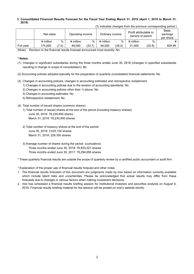 These consolidated financial results for mixi, Inc. cover the six-month period ending September 30, 2018. The data reveals a significant year-over-year downturn in financial performance across all primary metrics. Net sales decreased by 23.8% to ¥71,044 million, while operating income fell 43.9% to ¥20,723 million. Profit attributable to owners of the parent saw the sharpest decline, dropping 48.6% to ¥12,924 million compared to the same period in 2017. The company’s operations are divided into two primary reportable segments: Entertainment and Lifestyle. The Entertainment Business remains the dominant revenue driver, contributing ¥68,044 million in sales, though this represents a decrease from the ¥86,252 million recorded in the previous year. The Lifestyle Business saw a more drastic contraction, with sales falling from ¥7,003 million to ¥3,000 million, resulting in a segment loss of ¥815 million. This decline is partially attributed to a loss on business withdrawal totaling ¥2,018 million recorded as an extraordinary loss. Despite the reduction in earnings, the company maintains a strong financial position with total assets of ¥187,788 million and an equity ratio of 90.1%. Cash and deposits remain high at ¥147,921 million. Significant capital activity during the period included the repurchase of 2,795,800 treasury shares, valued at approximately ¥9,455 million. Looking ahead, the full-year forecast for the fiscal year ending March 31, 2019, has been revised downward. The company expects annual net sales of ¥155,000 million and a 42% decrease in operating income compared to the previous fiscal year. Dividends are projected at ¥120 per share for the full year, a slight decrease from the ¥121 paid in the prior period. These results were prepared under Japanese GAAP and have not been subject to a full quarterly review by an external audit firm.