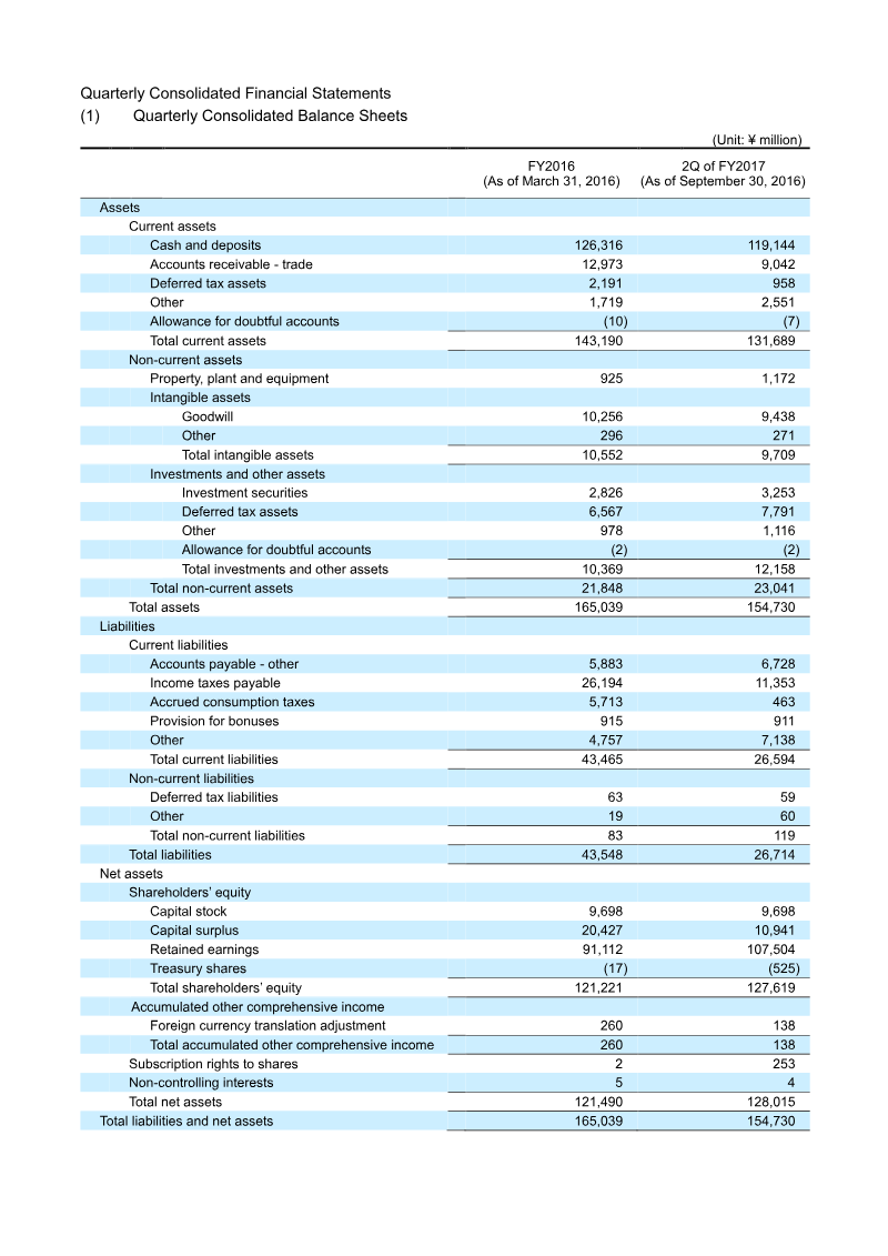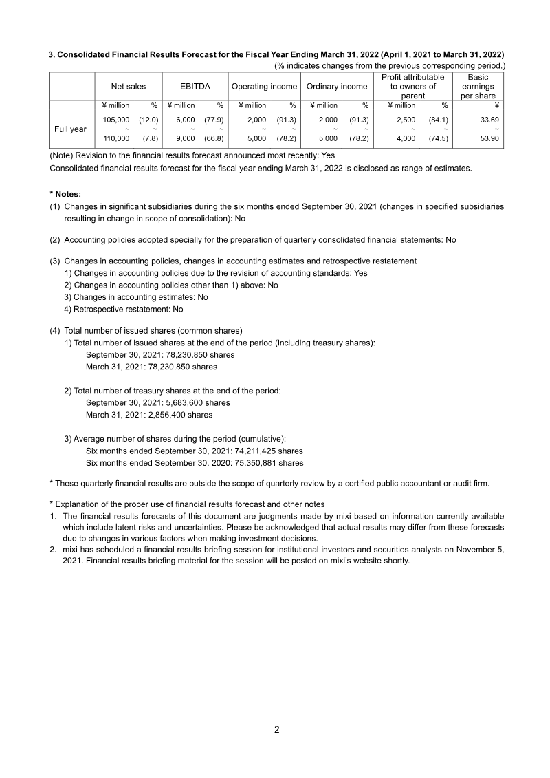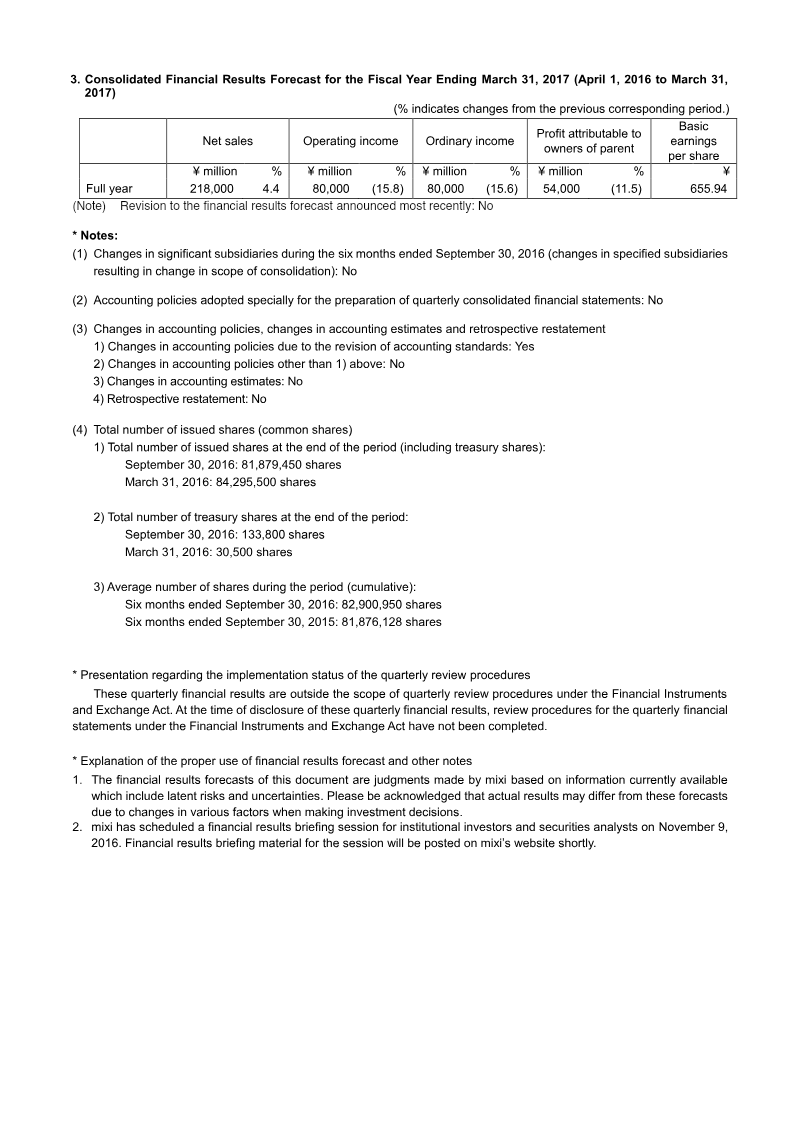 MIXI, Inc. reported consolidated financial results for the first half of fiscal year 2026, covering the period from April 1, 2025, to September 30, 2025. The data reveals a slight contraction in overall performance, with net sales decreasing 2.0% year-over-year to ¥67,428 million. Operating income fell 17.5% to ¥7,214 million, while profit attributable to owners of the parent declined 6.2% to ¥4,902 million. Despite these decreases, the company maintained a strong equity ratio of 70.5% and committed to a stable dividend forecast of ¥120 per share for the full year. Performance varied significantly across industry segments. The Digital Entertainment Business, anchored by the mobile game Monster Strike, saw an 11.1% decline in sales due to lower monthly active users, though segment profit rose 2.5% to ¥16,571 million through improved cost efficiencies. The Sports Business experienced 20.5% revenue growth driven by online betting services and spectator growth at Chiba Jets, but segment profit dropped 38.6% due to costs associated with the acquisition of PointsBet Holdings Limited. The Lifestyle Business achieved a turnaround, reaching profitability with ¥72 million in segment profit on 30.0% sales growth, fueled by the FamilyAlbum app. Conversely, the Investment Business saw a 46.8% drop in sales as it lacked the large-scale share sales recorded in the previous year. The financial position was notably impacted by the acquisition of PointsBet, which added six companies to the scope of consolidation and generated ¥19,831 million in provisional goodwill. This expansion contributed to a significant increase in non-current assets and short-term borrowings. Cash and cash equivalents decreased by ¥22,883 million during the period, primarily due to ¥25,533 million in acquisition payments and ¥6,061 million in treasury share repurchases. Based on these mid-year results, the company issued a revised full-year forecast projecting net sales of ¥168,000 million and a 26.1% year-over-year decline in net income.