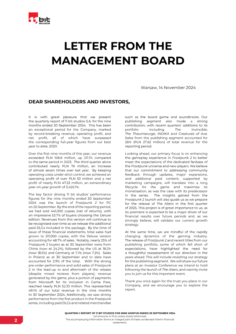 The interim financial results for the six‑month period ending 30 November 2023 demonstrate a mixed performance driven largely by strong back‑catalogue sales, particularly within the creative management simulation (CMS) segment. Total revenue fell 17 % to £47.7 million, with 72 % derived from pre‑period titles; CMS games contributed £26.3 million, representing 55 % of revenue and an 81 % sustain rate versus the previous year. New‑game launches underperformed, with F1 Manager sales down 34 % and Warhammer Age of Sigmar: Realms of Ruin missing launch targets. Gross profit declined 9 % to £33.0 million, while gross margin improved by six percentage points to 69 %. Operating costs rose modestly; research and development expense increased 1 % to £24.7 million, sales and marketing rose 21 %, and general & administrative costs grew 2 %. Adjusted EBITDA swung to a loss of £4.9 million from a £0.6 million profit in the prior period, largely due to higher operating costs and lower revenue. Cash balances stood at £17.1 million on 30 November, down from £19.9 million at year‑end, reflecting ongoing investment in development and restructuring. An organisational review announced in October targets a 20 % reduction in annual operating costs, with phase one completed and phase two slated for February. The company maintains FY24 revenue guidance of £80‑95 million and an adjusted EBITDA loss target of £9 million, achievable at the upper end of the revenue range. Geographically, the results cover the UK‑listed Frontier Developments plc; time coverage is H1 FY24 (June–November 2023). Methodology relies on standard IFRS accounting, with adjustments to derive adjusted EBITDA excluding restructuring, impairment and share‑based payments. The report underscores a strategic pivot toward CMS titles across FY25‑27, with planned console releases of two PC games and an own‑IP CMS title in FY25.