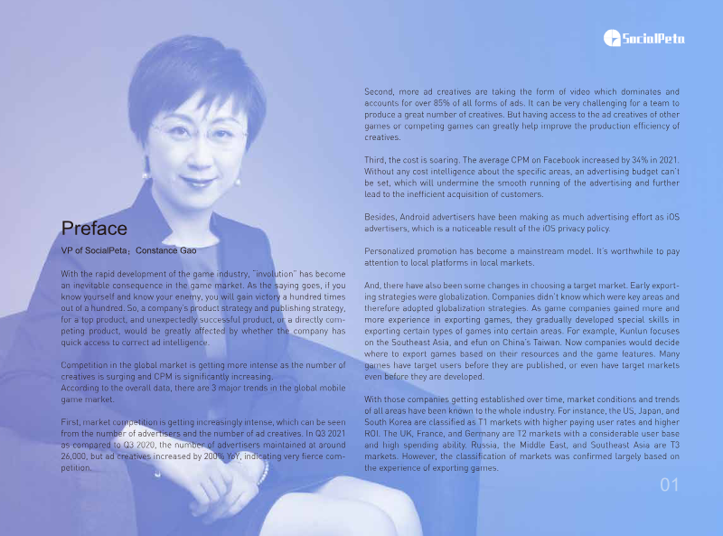 The 2025 Global Mobile Game Marketing Insights & Creative Breakdown provides a comprehensive analysis of the mobile advertising landscape, focusing on the evolution of ad creatives across more than 80 countries and 80 ad channels. Utilizing data from SocialPeta and Reforged Labs, the findings cover over 1.6 billion creatives and 10,000 tracked mobile games between January 2024 and October 2025. The primary thesis suggests that the mobile market is experiencing a significant surge in creative volume and a rapid shift toward AI-driven production to combat creative fatigue and rising competition. Key data points indicate that the average monthly creatives per advertiser rose to 123 in 2025, a nearly 20% year-over-year increase. New creatives now account for 58% of total monthly ads, peaking at over 60% in October. Geographically, North America and the Hong Kong, Macao, and Taiwan regions lead in total creative volume, while Europe maintains the highest refresh rate for new content. From a genre perspective, Strategy Games (SLGs) dominate advertising intensity with 325 monthly creatives per advertiser, while Casino games lead in creative turnover, with new assets making up 65.6% of their monthly output. The analysis highlights a clear platform divide, with Android hosting 77.6% of total creatives compared to 22.4% on iOS. Hard-core games represent the largest share of iOS creatives at 34.7%, whereas light games are more prevalent on Android. Video remains the dominant format, particularly for Puzzle games, where it accounts for 83.5% of ads. Furthermore, the industry has reached a tipping point in automation, with over 90% of advertisers now utilizing AI to generate scenes, characters, or scripts. Case studies of top performers like Royal Match and Monopoly GO! emphasize that successful marketing currently relies on "hook" innovation—such as diegetic sound, tactile satisfaction, and subverting brand expectations—to maintain high return on ad spend in an oversaturated market.