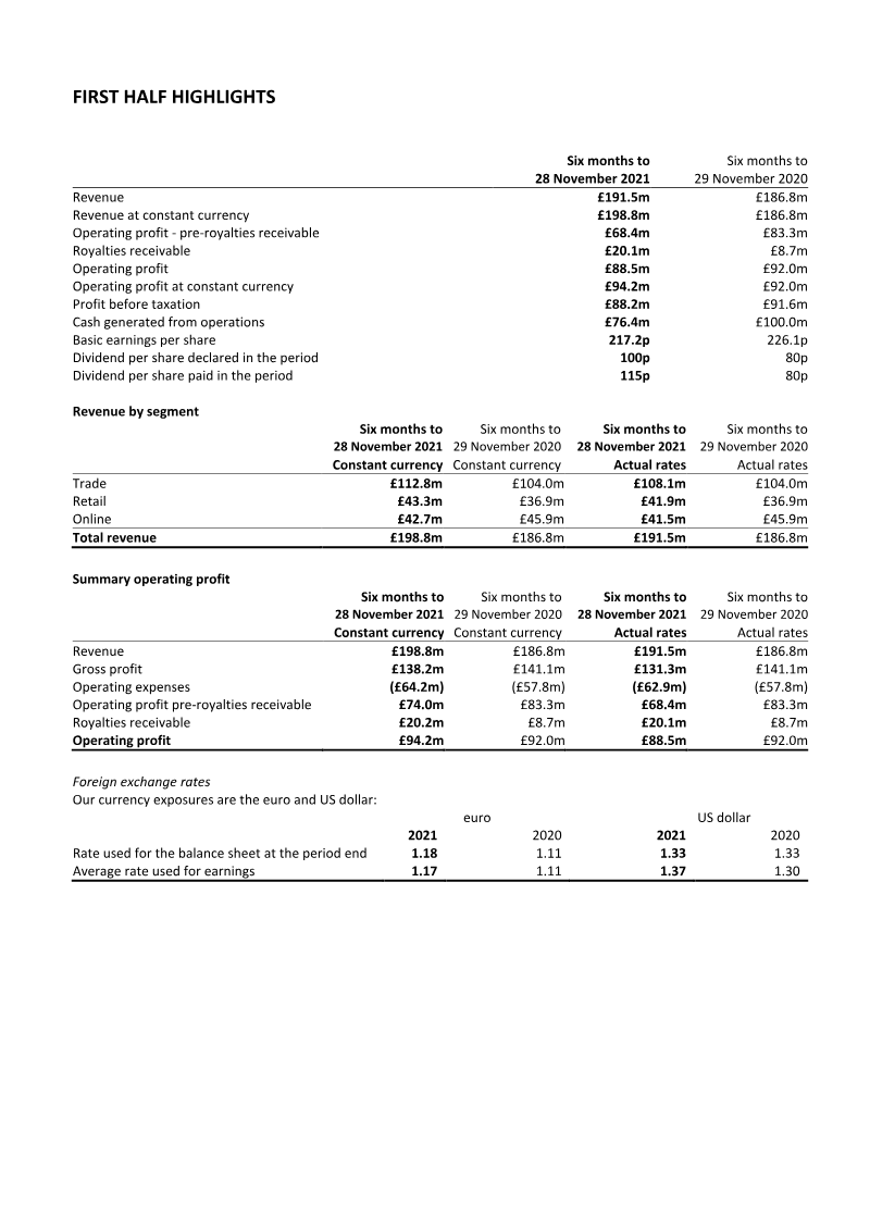 Games Workshop achieved record core revenue of £212.3 million during the 26-week period ending November 27, 2022, representing a 10.9% increase over the previous year. This growth was primarily driven by robust performance in the trade channel and a recovery in retail across the United Kingdom and Europe, even as online sales experienced a marginal decline and North American retail remained flat. Despite this top-line success, total profit before tax fell to £83.6 million from £88.2 million in the prior year. This contraction was largely attributed to a significant decrease in licensing income, which dropped to £14.3 million, alongside rising operational costs for materials, carriage, and staff investments. The financial landscape was further characterized by a decline in constant currency gross margins, which fell by 4.5% to 64.1% due to global inflationary pressures. To mitigate long-term risks and support future growth, significant capital was directed toward infrastructure, including expanded manufacturing facilities in Nottingham, a new sales office in Barcelona, and a major £4.9 million webstore platform upgrade. Strategic focus remains centered on global intellectual property expansion, highlighted by a preliminary agreement with Amazon Studios to explore media opportunities. The Group maintains a strong liquidity position with £85.2 million in cash and cash equivalents, allowing for the distribution of £54.2 million in dividends at 165p per share. While basic earnings per share decreased to 202.4p and the effective tax rate rose to 20.5%, the business remains a stable going concern. Management continues to monitor strategic risks involving IT infrastructure, intellectual property protection in media, and potential organizational complacency while navigating a complex macroeconomic environment.