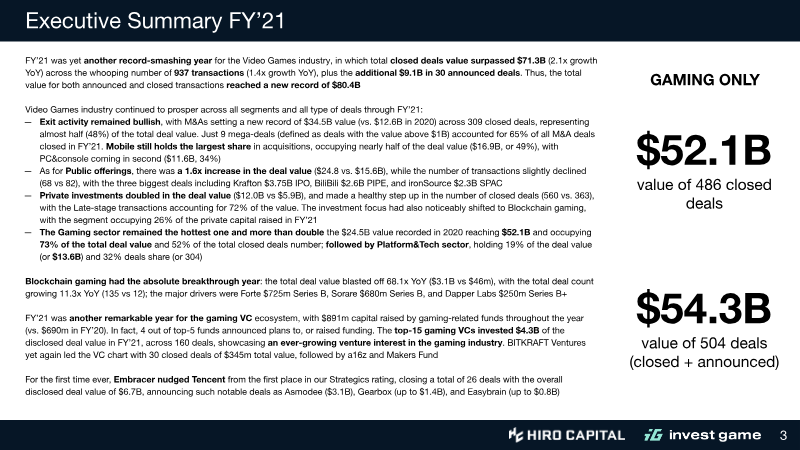 The first half of 2022 marked an unprecedented surge in gaming‑sector transactions, with 455 deals closed and a total value of $43.3 billion, rising to $113.6 billion when including announced but not yet finalized agreements. This activity set a new industry benchmark, reflecting heightened investor confidence and a broadening appetite for both mature and emerging gaming assets. Deal activity spanned the full spectrum of financing structures. Control‑oriented mergers and acquisitions dominated, while minority‑stake purchases, early‑stage venture capital, late‑stage venture capital, corporate strategic investments, IPOs and SPAC listings, fixed‑income instruments, and hybrid private‑public offerings each contributed to a diversified capital landscape. The data, compiled from public filings, market‑insight providers, and partner research, cover global markets and encompass all major video‑games subsectors, from console and PC titles to mobile and cloud‑based platforms. The analysis underscores that the record‑setting volume and value were driven not only by traditional M&A but also by an expanding ecosystem of venture and corporate funding, indicating a maturing market where both established publishers and nascent developers attract substantial capital. The report’s methodology emphasizes transparency and non‑advisory intent, positioning the findings as a reference point for industry participants rather than a basis for specific investment decisions. Access to the underlying deal tables and community insights is tiered across subscription levels, ranging from free access to comprehensive expert‑grade data, with sponsorship from Hiro Capital and Naavik noted as independent of the analytical conclusions.
