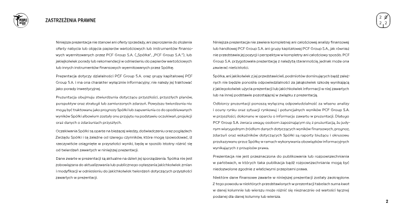 The financial results for PCF Group S.A. in 2022 reflect a transitional period for the company, characterized by a strategic shift toward self-publishing and a significant expansion of its global workforce. The primary objective of the data is to provide a comprehensive overview of the Group’s financial health and operational growth during the fiscal year ending December 31, 2022. The scope of the reporting covers the Group’s international presence, including studios in Warsaw, Rzeszów, Newcastle, Montreal, and New York, encompassing segments such as game development, quality assurance, and specialized subsidiaries like GameOn and Incuvo. Financial performance in 2022 saw a decline compared to the previous year, with total revenues reaching 171.5 million PLN, down from 180.3 million PLN in 2021. This decrease is primarily attributed to the termination of a major development agreement with Take-Two Interactive Software. Adjusted EBITDA fell from 70.5 million PLN in 2021 to 49.7 million PLN in 2022, while net profit dropped significantly from 61.3 million PLN to 22.0 million PLN. Despite these lower earnings, the balance sheet shows a substantial increase in development work in progress, rising from 68.0 million PLN to 137.1 million PLN. This shift indicates a higher allocation of developer salaries toward internal assets as the company pivots toward independent production. Operational growth remains a key highlight, with the total workforce expanding from 495 employees at the end of 2021 to 612 by the end of 2022. The majority of this team consists of developers, supported by QA and back-office staff. Geographically, the Group maintains a strong European base with 418 employees, while its North American operations grew to 194 staff members. The data suggests that while short-term profitability was impacted by the loss of a major partner, the Group is aggressively investing in its internal pipeline and human capital to support future self-published titles.