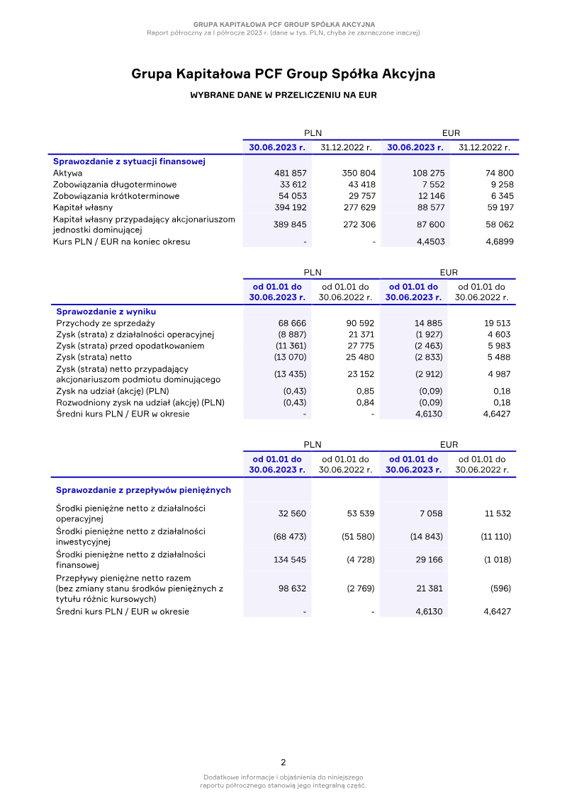 This financial analysis details the performance of PCF Group (People Can Fly) for the first half of 2023, a period characterized by strategic expansion and significant capital raising despite a year-over-year decline in profitability. The group reported revenues of 68.7 million PLN for 1H23, down from 90.6 million PLN in 1H22. This decrease, alongside a drop in adjusted EBITDA from 29.7 million PLN to 4.0 million PLN and a net loss of 13.1 million PLN, is attributed to a high comparative base in 2022 following the termination of the Take-Two Interactive contract and the release of Green Hell VR. Current results were also impacted by increased operational scale, with the workforce growing 16% to 674 employees. The group’s portfolio remains robust, featuring eight projects across various stages of development. Key highlights include two work-for-hire projects for Microsoft (Maverick and Gemini) and three self-published titles (Dagger, Bifrost, and Victoria) slated for 2025-2026. Project Maverick is expected to contribute significantly to financial results starting in the third quarter of 2023. Additionally, the group is expanding into the VR market with Bulletstorm VR, scheduled for release in December 2023. A pivotal development in 1H23 was the successful completion of a secondary public offering (SPO), raising 235.3 million PLN to fund the group’s updated strategy. This process brought Krafton Inc. on as a strategic investor with a 10% stake following a 144.5 million PLN investment. The agreement grants Krafton specific rights, including right of first refusal for publishing certain upcoming titles. Geographically, the group maintains a strong international presence with studios across Europe and North America, positioning itself for long-term growth through a mix of work-for-hire and self-publishing models.