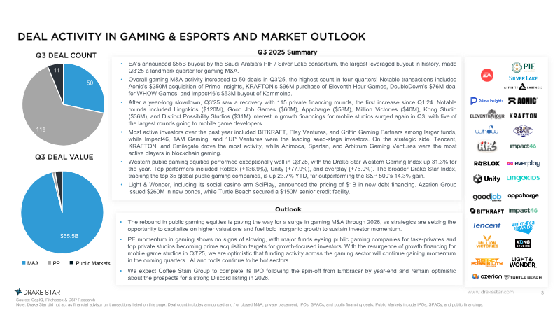 The global video game industry experienced a notable resurgence in growth during the third quarter of 2025, driven by a rebound in mobile in-app purchases and robust performance across PC and console platforms. The launch of the Nintendo Switch 2 served as a primary catalyst for console sector strength, reinforcing the enduring value of established intellectual property. While the broader capital markets faced significant headwinds, characterized by multi-year lows in public fundraising and subdued early-stage venture activity, the industry’s transaction landscape was defined by high-value consolidation. The $55 billion public takeover of Electronic Arts stands as the definitive event of the period, signaling a strategic shift toward large-scale mergers and acquisitions as the primary mechanism for growth. Market dynamics currently favor established entities, with diversified publishers and PC and console developers commanding significant valuation premiums due to their proven profitability and market stability. This environment has concentrated investment power among a select group of firms. BITKRAFT emerged as the most active participant in the early-stage ecosystem over the past twelve months, leading the sector with 16 deals totaling $113 million. Alongside other prominent investors like Bessemer Venture Partners and Menlo Ventures, these firms continue to deploy capital despite the broader contraction in private investment. Ultimately, the industry is transitioning into a phase of maturity where scale and intellectual property ownership are paramount. While early-stage funding remains constrained, the surge in total transaction value through megadeals indicates that institutional confidence remains high for proven assets. The current landscape suggests a bifurcated market where high-growth, established publishers attract significant capital, while smaller, early-stage ventures face a more challenging environment for securing liquidity and growth funding.