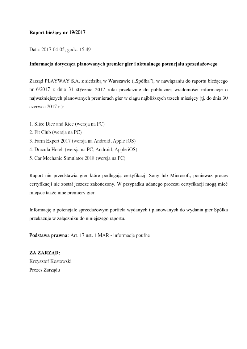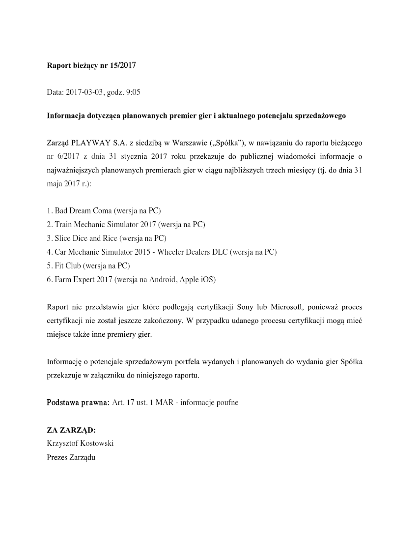 PlayWay S.A. has established a strategic release schedule for its most significant upcoming titles, covering a six-month window starting in May 2018. This roadmap emphasizes a diversified portfolio that spans multiple platforms, including PC, Xbox One, and PlayStation 4. The selection of titles highlights the company’s focus on the simulation genre while expanding into horror and tactical strategy markets. The release pipeline features ten primary projects, led by high-profile titles such as Agony and Phantom Doctrine, both of which are slated for cross-platform launches on consoles and PC. The strategy also includes the console porting of the established hit Car Mechanic Simulator 2018, indicating a push to monetize existing intellectual property across new hardware ecosystems. Other notable PC-centric releases include House Flipper, Uboat, and Thief Simulator, reflecting a commitment to niche simulation experiences that have historically performed well for the publisher. This disclosure serves as a formal update to previous market communications and fulfills regulatory requirements regarding the dissemination of inside information. By outlining these specific titles, the management demonstrates a robust production cycle intended to maintain consistent market presence and revenue generation throughout the middle of the 2018 fiscal year. The geographic scope is global, as these platforms and digital distribution channels reach an international gaming audience.