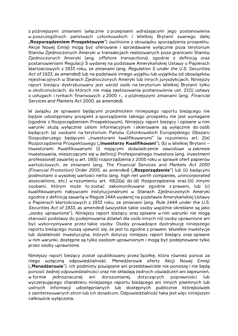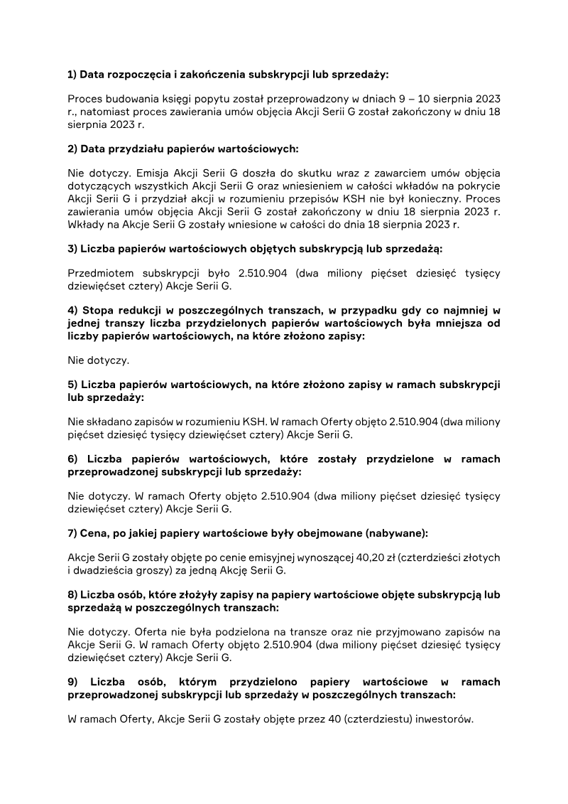 PCF Group S.A., the parent company of game development studio People Can Fly, announced the final terms for its Series G share issuance following the completion of a book-building process on August 10, 2023. This issuance is part of a broader capital increase strategy previously authorized by the company’s Extraordinary General Meeting. The primary purpose of the announcement is to disclose the specific volume and pricing of the new shares to be offered to investors. The company determined that it will offer a total of 2,510,904 Series G ordinary bearer shares. A significant portion of this issuance, totaling 251,091 shares, is specifically designated for Krafton, Inc., in accordance with a prior investment agreement and subsequent addendum established in June 2023. The issue price for all participating investors, including Krafton, has been set at PLN 40.20 per share. The scope of this issuance is restricted to qualified institutional investors and professional clients, primarily within the European Economic Area and the United Kingdom. Strict geographic exclusions apply, with the offer explicitly not extended to the United States, Australia, Canada, Japan, or South Africa. The issuance is conducted under exemptions provided by the EU Prospectus Regulation, meaning no formal prospectus was required for the offering. The methodology for determining these figures relied on a private subscription process and a book-building exercise managed by the company’s board. The announcement maintains a strictly neutral and regulatory tone, emphasizing that the information is provided for compliance with market abuse regulations and does not constitute a public offering or investment recommendation. All forward-looking statements regarding the company's future performance are characterized as subject to significant market risks and uncertainties.