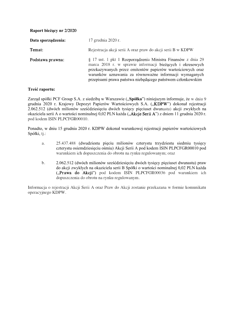PCF Group S.A., the Warsaw-based parent company of the game development studio People Can Fly, finalized the transition of its Series B shares to the main market of the Warsaw Stock Exchange in early February 2021. This regulatory filing details the formal resolutions passed by the exchange management to convert temporary allotment certificates into permanent ordinary bearer shares. The process involved 2,062,512 Series B shares, each carrying a nominal value of 0.02 PLN. The transition followed a specific timeline where February 2, 2021, served as the final trading day for the rights to shares, previously identified under the ISIN code PLPCFGR00036. Effective February 3, 2021, these rights were replaced by the actual Series B ordinary shares, which were introduced to trading on the primary market under the new ISIN code PLPCFGR00010. This administrative milestone was contingent upon the formal registration of the shares by the National Depository for Securities. This action represents a standard post-IPO procedure for Polish game developers listed on the Warsaw Stock Exchange, ensuring that newly issued capital is fully integrated into the public trading environment. By converting these rights into shares, the company solidified its equity structure following its initial public offering. The resolutions governing this change took effect immediately upon their adoption on February 1, 2021, marking the completion of the listing process for this specific tranche of securities within the Polish capital market.