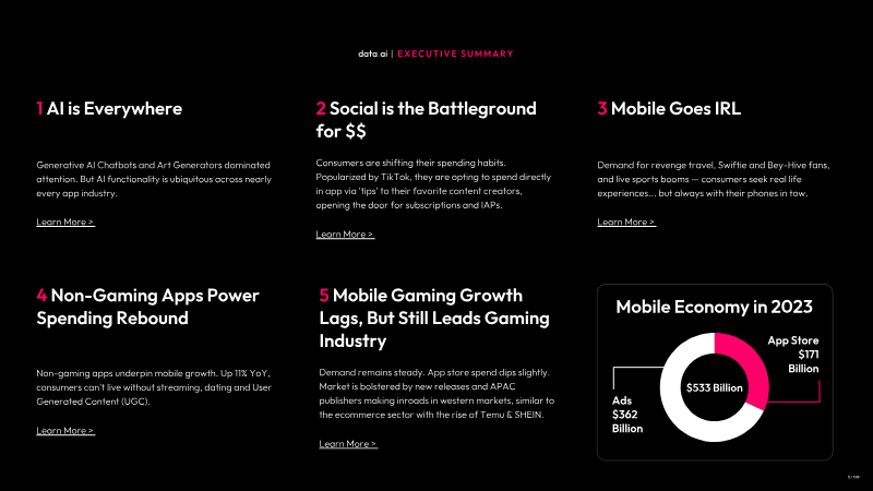 The mobile market has transitioned into a monetization-first era, characterized by a 10.6% year-over-year increase in global in-app purchase revenue to $167 billion in 2025. For the first time, non-gaming apps have surpassed games in total revenue, fueled by a surge in generative AI, social media, and streaming. While the top 1% of publishers continue to command 92% of total revenue, the market is showing signs of gradual democratization as the revenue share of the bottom 99% of publishers has nearly doubled since 2019. Generative AI has emerged as the primary catalyst for growth, with downloads doubling to 3.8 billion and revenue tripling to exceed $5 billion. This sector is increasingly concentrated among major tech giants and specialized leaders like OpenAI, whose ChatGPT platform joined the billion-dollar revenue club. Beyond AI, the "attention economy" is being reshaped by short-form drama apps, which saw a 311% increase in time spent, and the continued dominance of social media platforms, which captured 2.5 trillion hours of user engagement globally. The mobile gaming landscape is currently defined by the rise of hybridcasual titles and strategy games, particularly 4X titles from Eastern publishers. While traditional casual games face retention and advertising headwinds, live operations focusing on competitive social events have become essential for maintaining player value. In other sectors, finance apps grew to 8 billion downloads driven by credit and lending, while the retail sector saw a recovery led by interactive platforms and the expansion of Temu. Regional and technological shifts are further diversifying the ecosystem. In the United States, autonomous mobility services like Waymo are gaining significant market share in early-adoption cities, while the sports betting market is being disrupted by "Pick’em" apps that utilize fantasy sports classifications to bypass traditional regulatory hurdles. Across health, fitness, and travel, the integration of generative AI as a discovery and personalization tool is now a critical driver of both user engagement and record-breaking revenue levels.