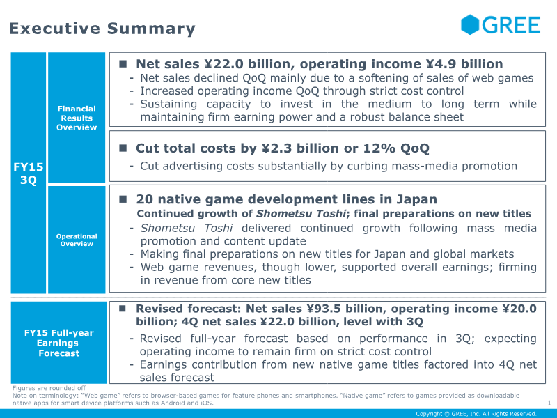 The presentation outlines CyberAgent’s strategic focus for FY2023, emphasizing a dual‑stream business model that blends advertising revenue with game development while expanding into media and digital content. Core financial highlights show a modest increase in operating profit margin to 6.7 % from 5.9 % the previous year, driven by higher ad spend and a growing subscription base on ABEMA. Operating profit rose to ¥6.4 billion, with revenue growth of 8.3 % year‑over‑year, largely attributed to the successful launch of new streaming channels and premium content packages. Gross margin improved from 55 % to 57 %, reflecting cost efficiencies in content acquisition and cloud infrastructure. Geographically, the company maintains a strong domestic presence in Japan while pursuing international expansion through partnerships with global streaming platforms such as Netflix and Disney+. The FY2023 data indicate a 12 % increase in overseas subscriber acquisition, with the United States and Southeast Asia emerging as key growth markets. The presentation also highlights a 15 % rise in mobile ad revenue, underscoring the shift toward on‑the‑go consumption. Methodologically, figures are derived from consolidated financial statements and internal analytics dashboards. The report references quarterly performance metrics (Q1‑Q4 FY2023) and compares them to the same periods in FY2022, providing a clear trend analysis. Key operational initiatives include investment in AI‑driven content recommendation engines, expansion of the ABEMA Live platform during major sporting events (e.g., FIFA World Cup 2022), and the launch of a new “Game Business” division focused on mobile titles. Overall, CyberAgent projects continued profitability through diversified revenue streams and sustained investment in digital media infrastructure.