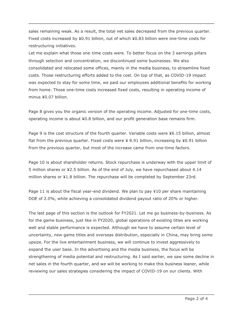 The briefing outlines GREE’s strategic focus for FY2018, emphasizing steady progress in its Funplex division and a significant investment of ¥10 billion into the emerging VTuber market. Funplex benefits from separating development and operation functions, positioning itself as a trusted operator for third‑party titles. The VTuber initiative allocates roughly ¥4 billion to support illustrators and creators, with the remaining ¥6 billion earmarked for advertising; GREE plans to scale investments as market traction grows, anticipating rapid expansion driven by the convergence of YouTube, influencer, and anime cultures. Internationally, GREE pursues a “game engine, IP, and global” strategy. The North American launch of *Is It Wrong to Try to Pick Up Girls in a Dungeon: Memoria Freese* has shown strong initial sales, and the company aims to release titles simultaneously overseas or within six months of a Japanese launch, depending on development and partnership logistics. GREE also targets Facebook Instant Games with *Fishing Star*, viewing the platform as a potential major channel due to its messenger integration and low download barrier. The company highlights synergies between VTubers and VR, leveraging existing 3D rendering expertise to enhance character interaction. Domestic IPs such as *Another Eden* and *SINoALICE* are positioned for overseas appeal, with accelerated content release schedules expected to sustain sales growth. Overall, GREE’s strategy blends substantial capital deployment in new media formats with aggressive global expansion of proven IPs, aiming to capture emerging revenue streams while maintaining operational momentum.