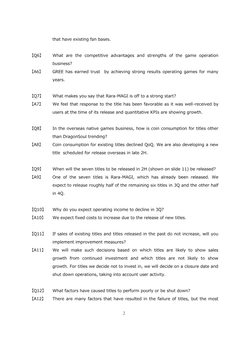 GREE’s financial performance for the first quarter of fiscal year 2020 reflects a transitional period characterized by strategic portfolio adjustments and a shift toward global distribution. The quarter experienced a sequential decline in sales, primarily attributed to a reactive drop following major anniversary events in the previous quarter and the strategic transfer of specific titles intended to streamline the game operation business. Despite these headwinds, the outlook for the second quarter remains cautiously optimistic, with projected operating income of approximately 0.5 billion yen. While browser game revenue continues to trend downward, mainstay titles are expected to perform strongly, supported by increased advertising investment in high-potential assets. The strategic focus has shifted toward improving profitability through cost-cutting measures and the expansion of the title lineup. This includes a robust commitment to international markets, supported by a newly developed system capable of simultaneous global releases. However, the timing for specific overseas launches, such as the distribution of SINoALICE, remains contingent on local partnerships and regulatory approvals, particularly in China. Challenges persist in media-mix strategies, as evidenced by the underperformance of AFTERLOST - Shoumetsu Toshi, which failed to meet expectations in attracting new users while maintaining the existing fan base. Future growth is increasingly tied to the development of the REALITY platform and the advancement of 5G technology. Rather than pursuing aggressive immediate growth, the current strategy emphasizes the steady expansion of the content portfolio and the enhancement of platform functionality to prepare for a more robust infrastructural environment. This long-term approach aims to increase product lifetime value while navigating the evolving landscape of mobile gaming and virtual platforms. Overall, the findings indicate a focus on operational efficiency and global readiness as the primary drivers for upcoming fiscal periods.