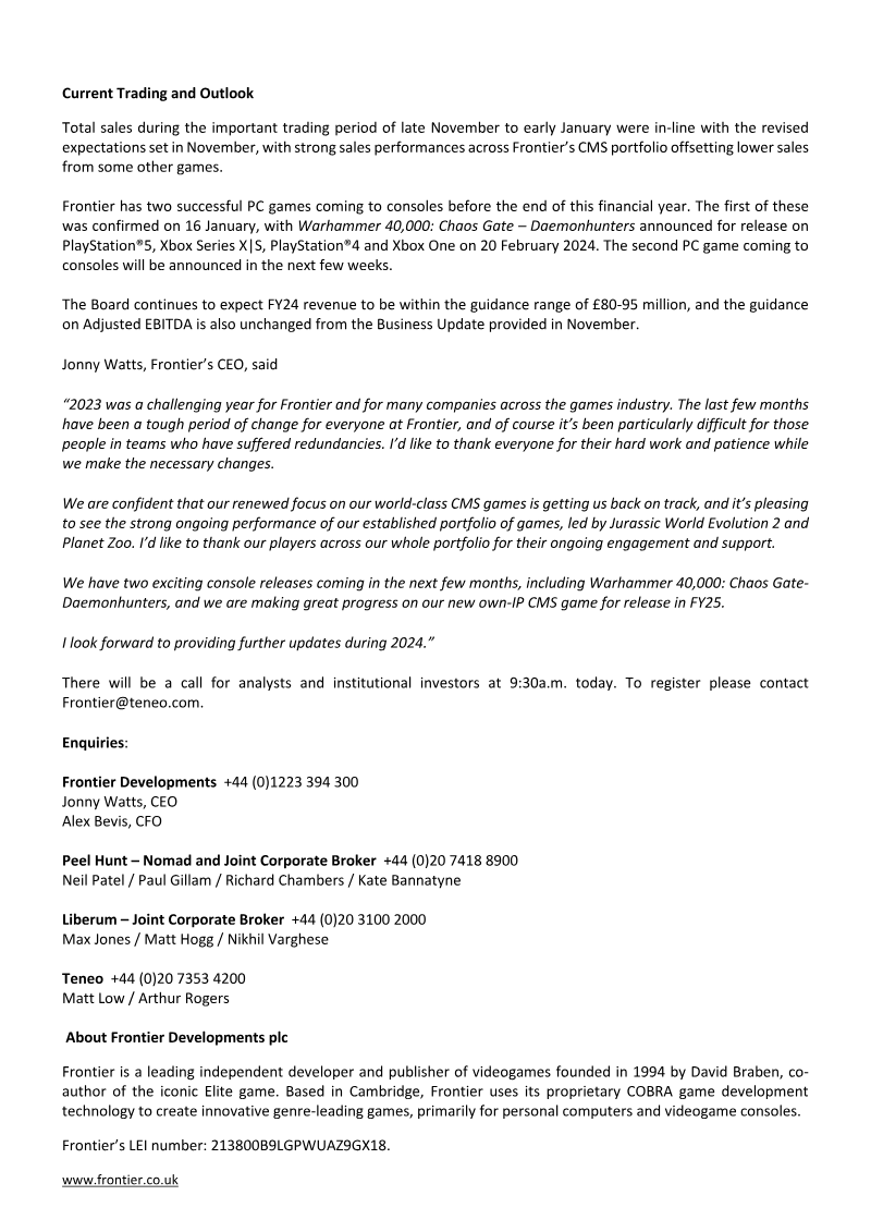 The report informs stakeholders that the production agreement negotiations for the virtual‑reality action/combat game code‑named “Dolphin” have been indefinitely suspended. The PCF Group S.A., headquartered in Warsaw, had previously entered a non‑binding letter of intent with a prominent U.S. entertainment company on 17 June 2023 to develop the game for VR platforms. On 22 September 2023, the publisher notified the company that work on the project would be halted permanently. Informal discussions suggest the decision is linked to ongoing industry strikes in the United States, creating uncertainty within the entertainment sector. Consequently, all negotiations regarding the production agreement have been put on hold. The report covers a single geographic region—Poland and the United States—and focuses exclusively on the video‑game development segment, specifically virtual reality action titles. No survey or statistical methodology is employed; the information is based on direct communication between company representatives and the publisher. The primary conclusion is that external labor disputes have disrupted the partnership, leading to a suspension of contractual negotiations and project development.