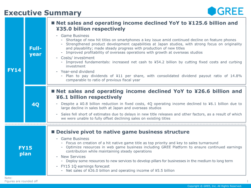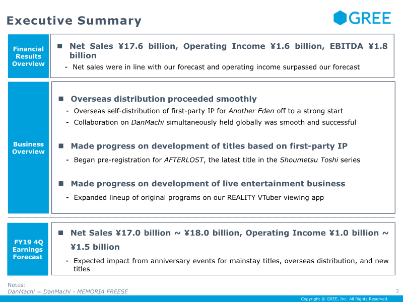 The briefing outlines GREE’s strategic outlook for the remainder of FY2021 and beyond, focusing on its core Game business, profitability trajectory, investment income sustainability, and short‑term financial expectations. GREE anticipates a medium‑to‑long‑term sales uptrend driven by the release of new game titles in FY2022 and subsequent years, while simultaneously strengthening operational capabilities for existing titles. Profitability is expected to broaden through the creation of more profitable business structures and favorable contractual terms, aligned with a strategy centered on Game engine development, intellectual property acquisition, and global expansion. Investment income derives primarily from gains on venture‑capital partnerships in Japan and overseas, as well as the consolidation of previously unconsolidated subsidiary STRIVE Inc. The company notes that short‑term returns may fluctuate due to diversified investment portfolios, but medium‑to‑long‑term sustainability is projected. Planned allocation of these gains targets reinvestment in core businesses and shareholder returns. Financially, GREE projects operating income for the fourth quarter of FY2021 at approximately ¥1.0 billion, reflecting confidence in its current revenue streams and cost management. The briefing covers Japan’s domestic market with implications for global expansion, covering the period up to FY2021 and projecting into FY2022. Methodological details are limited, but the focus remains on strategic investment, operational efficiency, and incremental revenue growth.