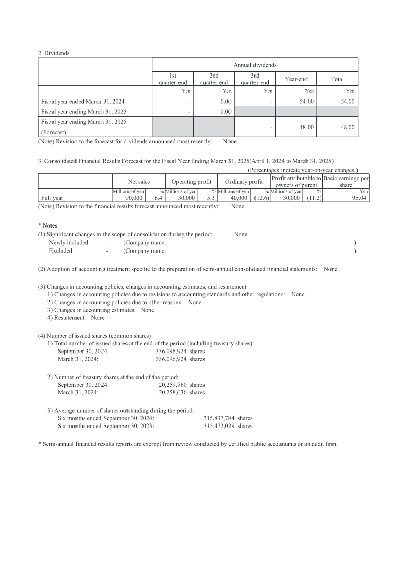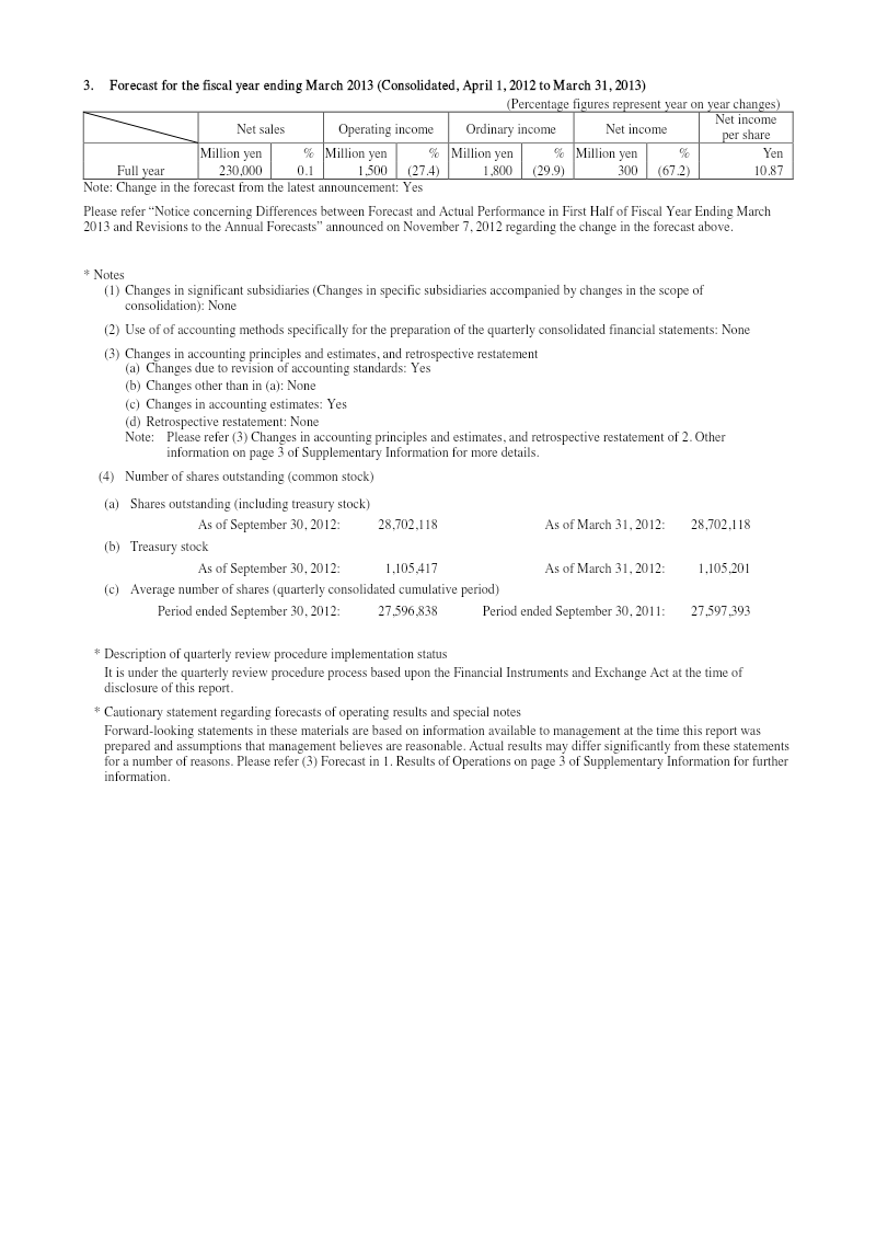 The company forecasts full‑year 2023 sales of ¥120,000 million (up 1.6 %) but expects operating income to decline by 38.5 % to ¥12,500 million and ordinary income to drop 47.1 % to ¥8,500 million, reflecting continued investment‑related restructuring and higher cost bases. No revisions to the forecast were announced.