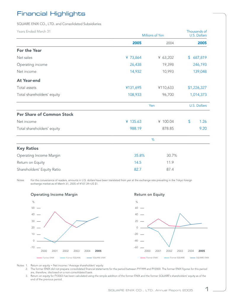 Printed in Japan This annual report is printed on recycled paper. 2004 2005 2004 2005 2004 2005 2004 2005 2004 2005 2004 2005 Total Games (Offline) Games (Online) Mobile Phone Content Publication Others Financial Highlights ________________________________________ 1 Disclaimer Regarding Forward-Looking Statements To Our Shareholders ____________________________________ 2 Statements in this annual report with respect to the current plans, estimates, stra...