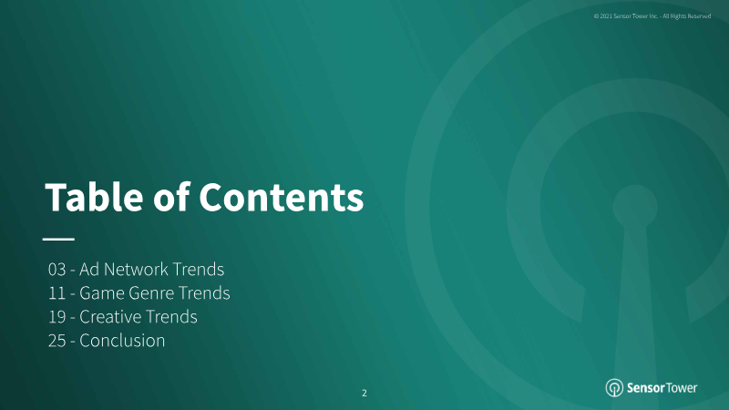 The report examines U.S. mobile game advertising in 2021, focusing on ad network share of voice (SOV), creative formats, genre‑specific trends, and demographic alignment. Five gaming‑centric networks—Chartboost, Unity, Adcolony, ironSource, and Vungle—dominated game advertising, each maintaining over 90 % SOV from games on iOS and Android. In contrast, mainstream social platforms (Facebook, Instagram, TikTok, YouTube) displayed a more balanced mix of gaming and non‑gaming ads, with SOV from games ranging 40–60 %. AppLovin and MoPub shifted toward gaming in late‑2018, investing heavily in hypercasual publishers; this pivot increased their game SOV to roughly 90 % on iOS and 80 % on Android by early‑2021. AdMob’s focus on Google Play titles grew, with its game SOV rising from 60 % to 80 % by Q2 2021.