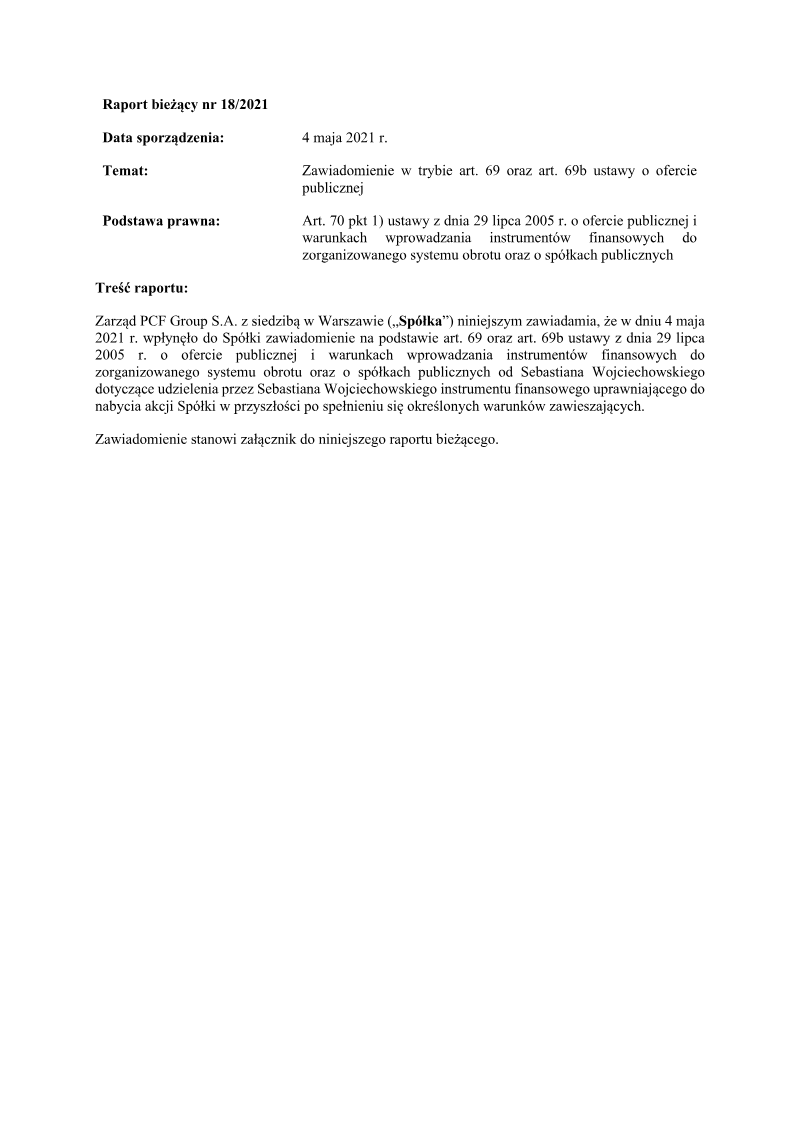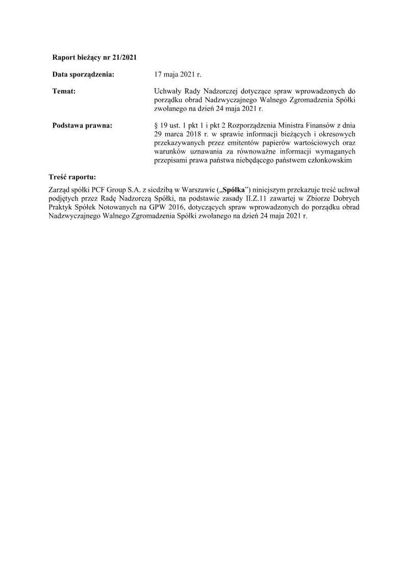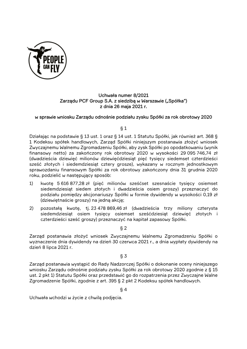 Announcement of the Board: PCF Group Spółka Akcyjna
