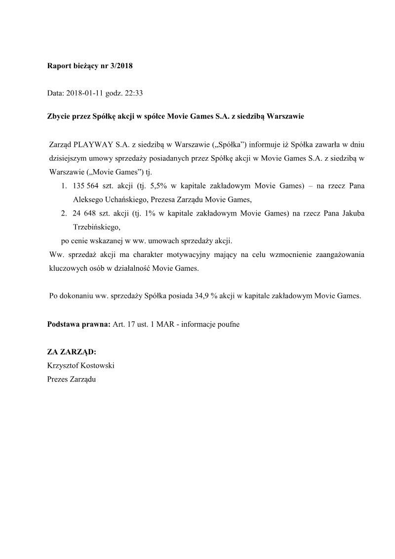 Raport Bieżący Nr 4/2018