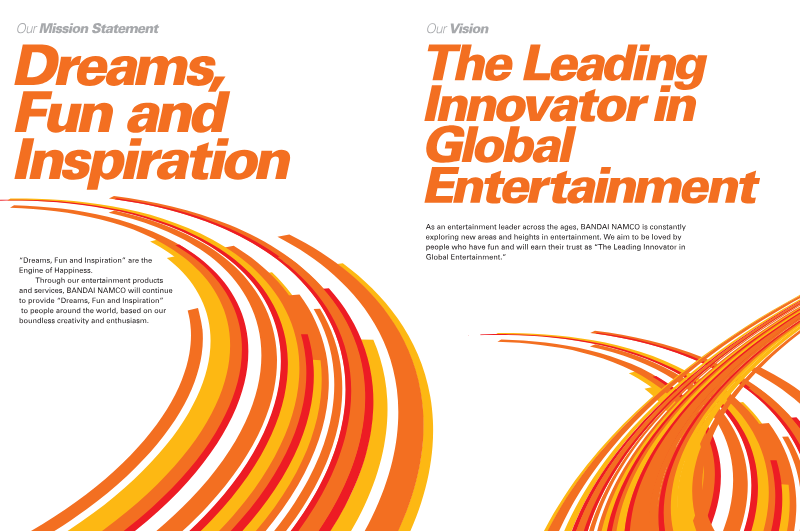 I N T E G R AT E D R E P O R T 2 0 1 8 develops entertainment-related toys, network content, home video games, amusement machines, amusement facilities, and visual and music content. Under the Mid-term Plan, which was launched in April 2018, the Group aims to achieve “CHANGE” to progress to the next stage, with a Mid-term Vision of CHANGE for the NEXT: Empower, Gain Momentum, and Accelerate Evolution. “Dreams, Fun and Inspiration”are the Engine of Happiness.