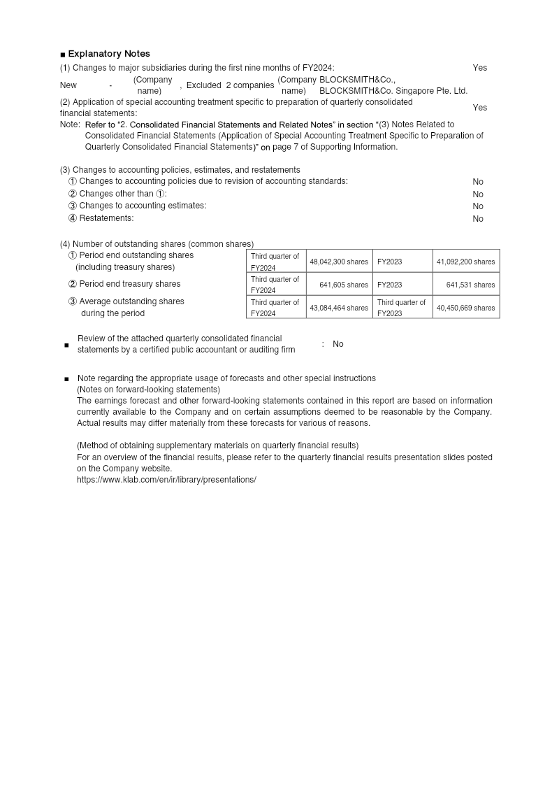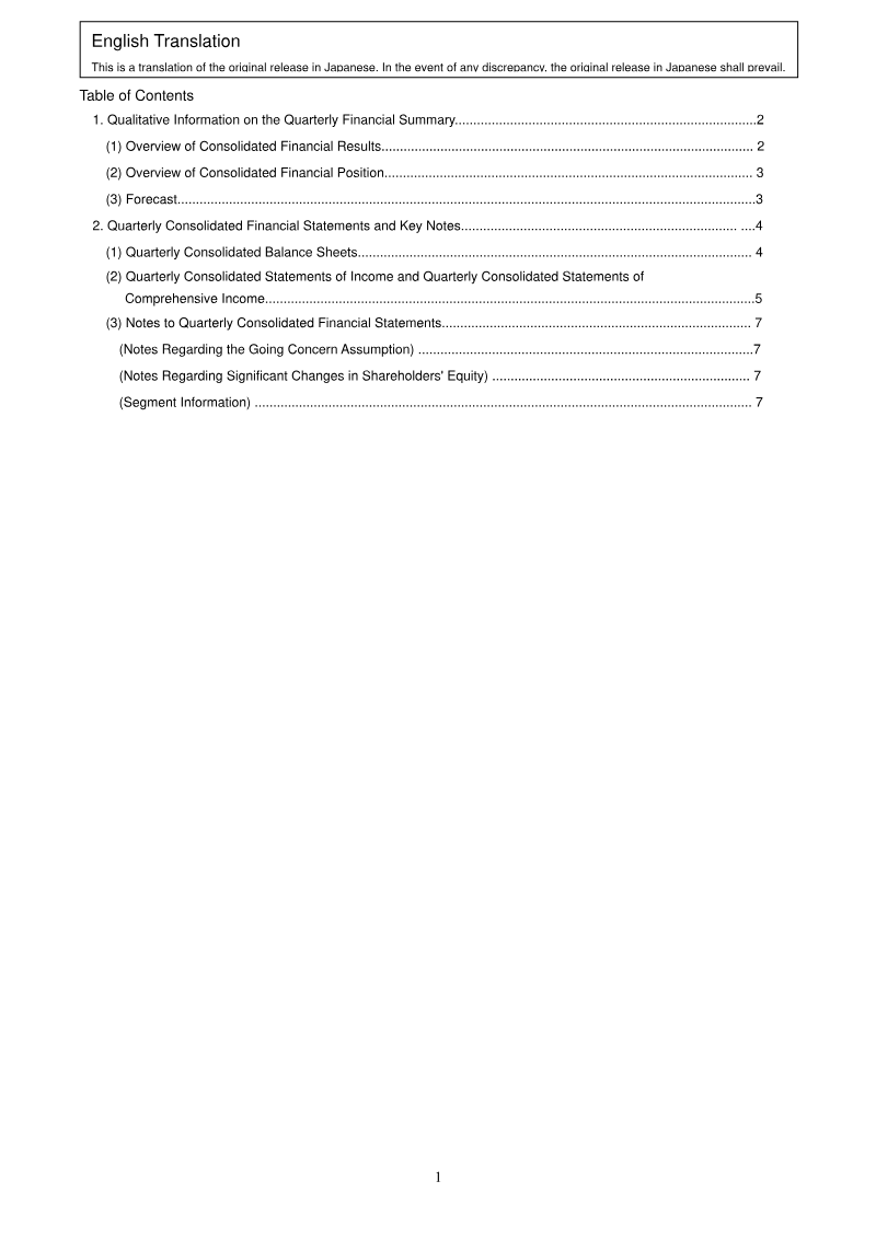 KLab Inc. reported a first‑quarter operating loss of ¥281 million, down from a ¥505 million loss in the same period of FY2021. Revenue fell 35.7 % to ¥4.11 billion, driven by a decline in game‑business sales; the company recorded a ¥1.54 billion impairment loss on software, eliminating the prior year’s extraordinary loss and reducing net loss to ¥177 million. Comprehensive income for the quarter was a ¥224 million loss, reflecting foreign‑exchange gains and valuation adjustments on available‑for‑sale securities. Total assets stood at ¥18.72 billion, with shareholders’ equity of ¥12.63 billion and an equity ratio of 67.4 %. No dividends were declared for FY2022, and the company withheld a forecast of annual operating performance due to forecasting difficulty. The financial statements are prepared under Japanese GAAP and include a detailed segment analysis. The game business remains the sole reported segment, with revenue from paid customers at ¥3.44 billion and contract‑based revenue at ¥1.57 billion, yielding a gross profit of ¥608 million. The company applied the Accounting Standard for Revenue Recognition from the beginning of FY2022, shifting revenue recognition to a period‑of‑use basis for in‑game currency and a one‑time method for license grants, which increased revenue by ¥9 million and improved operating loss by the same amount. The change had no impact on retained earnings or prior‑year figures. The quarterly report covers Japan only, covering January to March 2022, and is based on consolidated financial statements with no restatements or significant accounting changes beyond the revenue‑recognition policy shift.