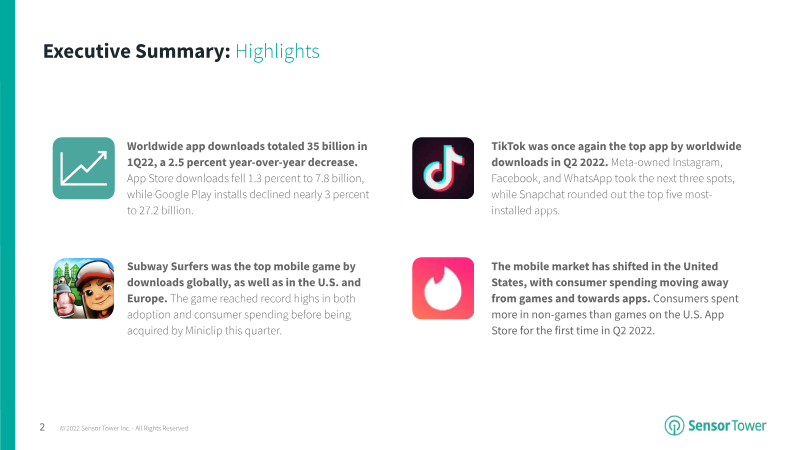 In Q4 2022 the global mobile app ecosystem delivered 35.5 billion unique downloads, a marginal 0.1 % decline year‑over‑year. The Apple App Store grew 2.4 % to 8.1 billion installs, while Google Play fell 0.9 % to 27.5 billion. Instagram remained the world’s most‑downloaded app across both stores, and Stumble Guys emerged as the fastest‑growing mobile game worldwide. The Utilities category on the App Store sustained its quarterly growth streak, and Google Play’s Tools segment became the third‑fastest growing category in Q4 2022.