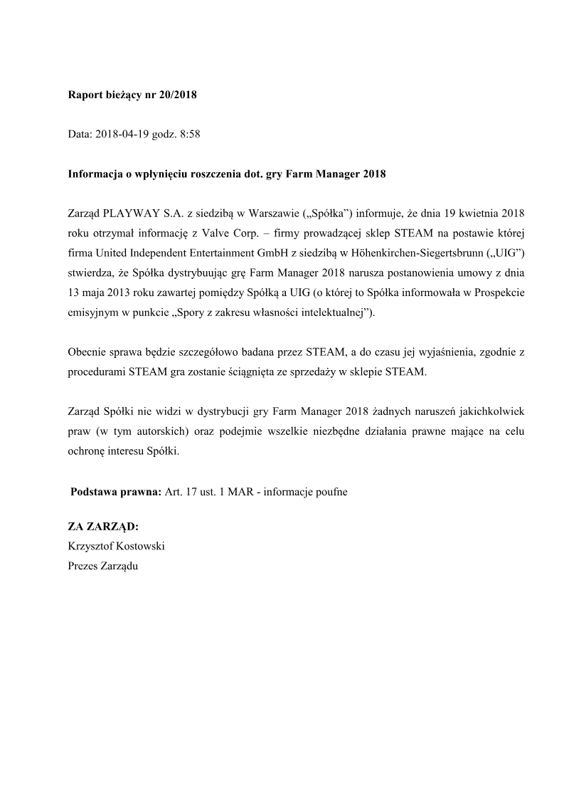 PlayWay S.A. outlines its strategic release schedule and market potential for the first half of 2018, focusing on a diverse portfolio of simulation and horror titles across PC, console, and mobile platforms. The primary objective is to provide transparency regarding upcoming product launches and the current consumer interest levels reflected in digital storefront metrics. The scope of the data covers global digital distribution, specifically targeting the PC, Xbox One, PlayStation 4, Android, and iOS market segments.