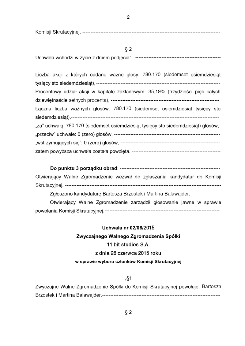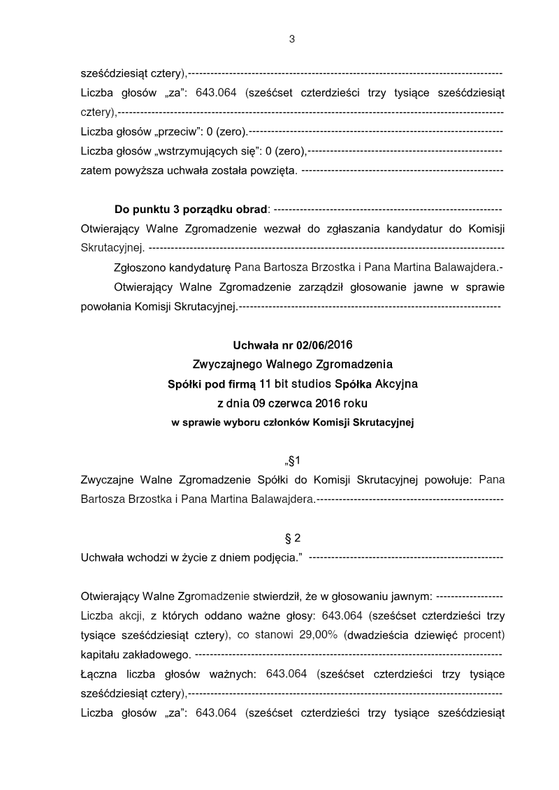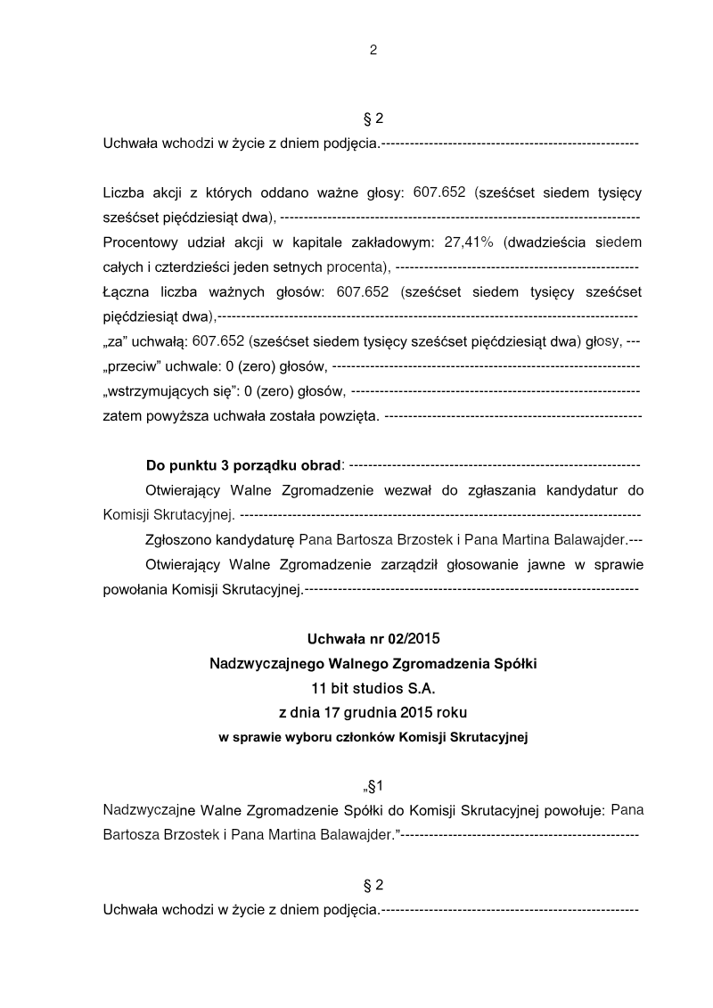 Completion Report for Share Subscription Series E — 11 bit studios S.A.