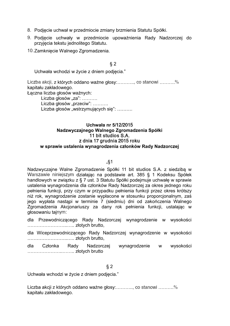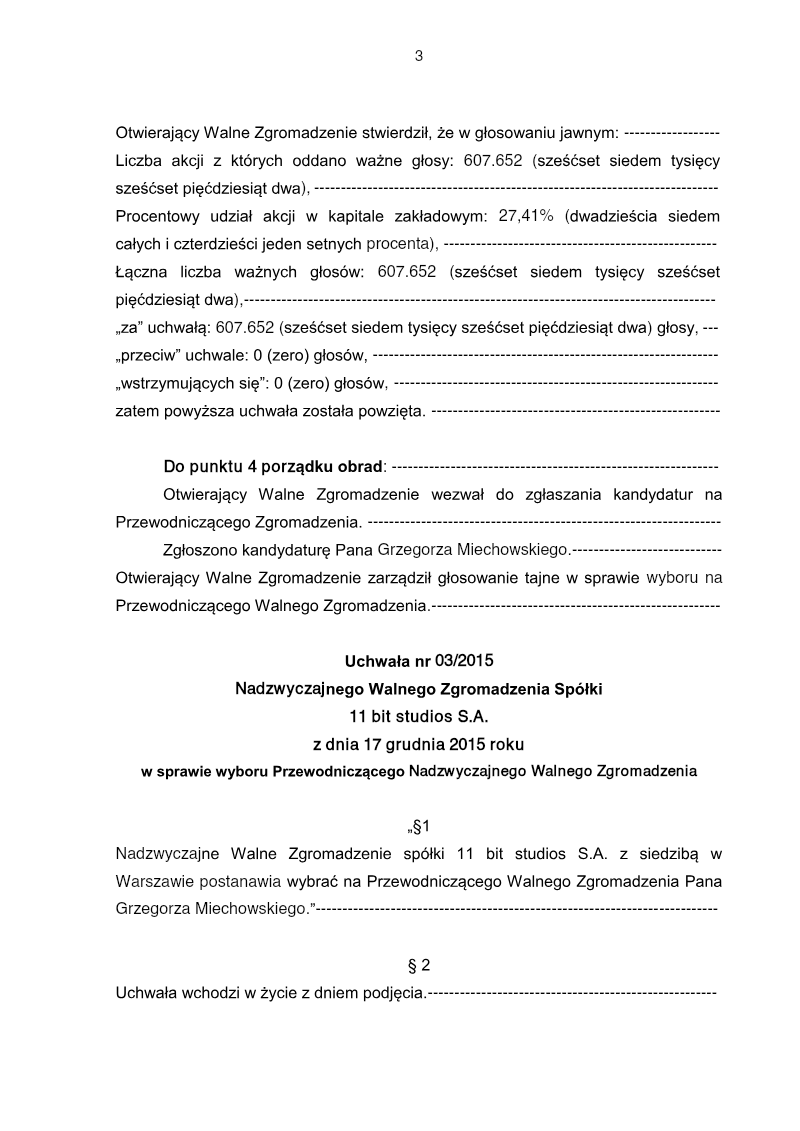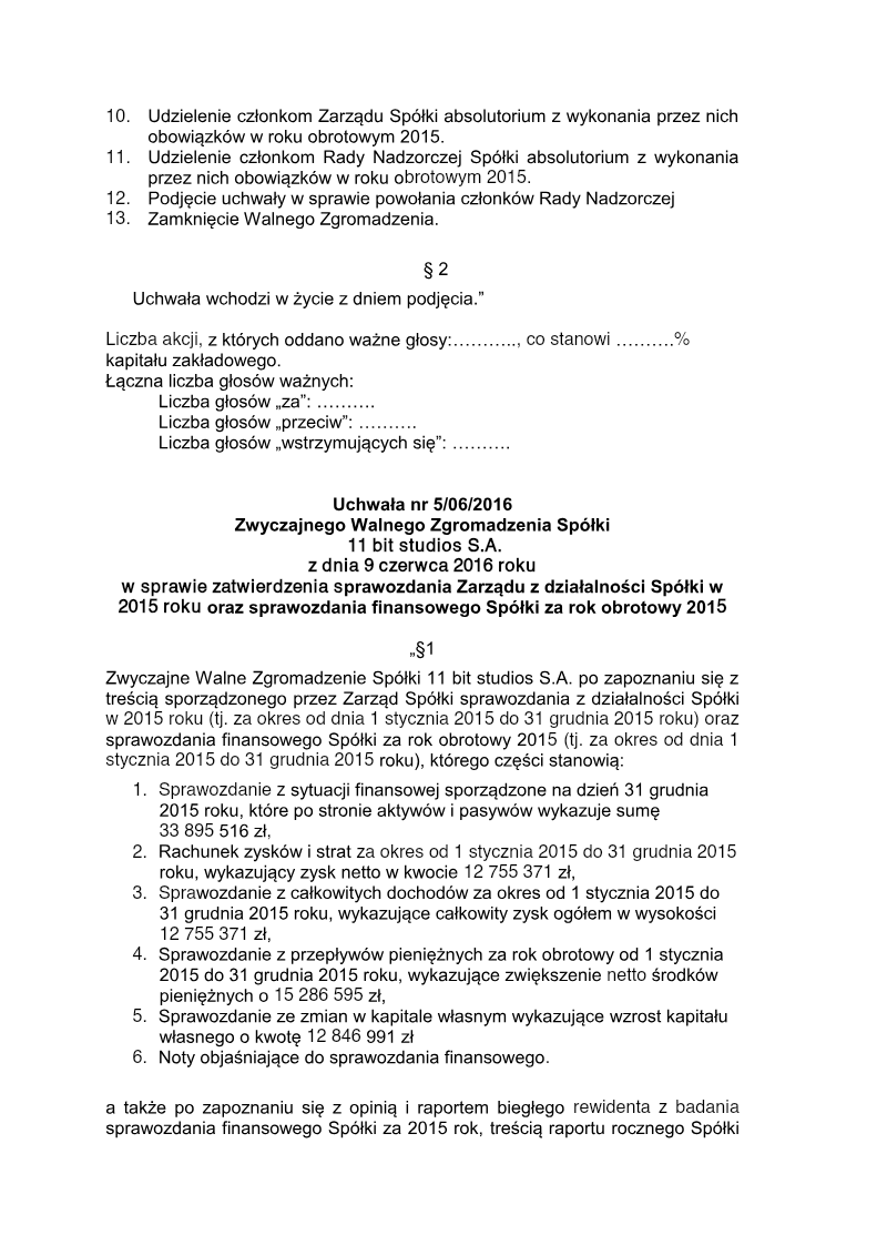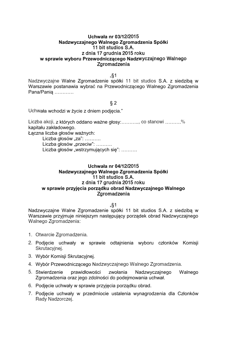 Completion Report for Share Subscription Series E — 11 bit studios S.A.