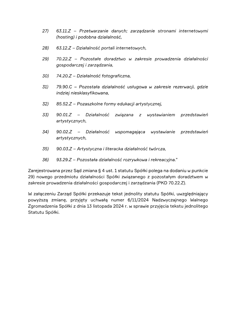 Resolution No. 7/11/2024 of the Extraordinary General Meeting of PCF Group S.A.