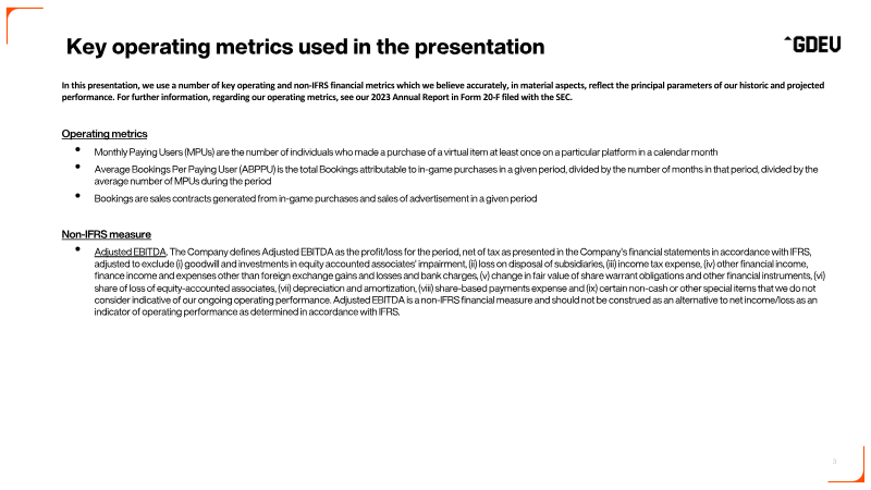 The methodology relies on IFRS standards alongside non-IFRS metrics like Adjusted EBITDA to assess core business performance. Adjusted EBITDA improved from negative $12 million in Q1 2023 to negative $3 million in Q1 2024. Key operating metrics used to evaluate health include Monthly Paying Users (MPUs), Bookings, and Average Bookings Per Paying User (ABPPU). Cash flow analysis shows a net increase in cash and cash equivalents of $12.9 million for the period, ending March 31, 2024, with a total cash balance of $84.6 million, despite significant financing outflows related to share buy-backs and put option payments.