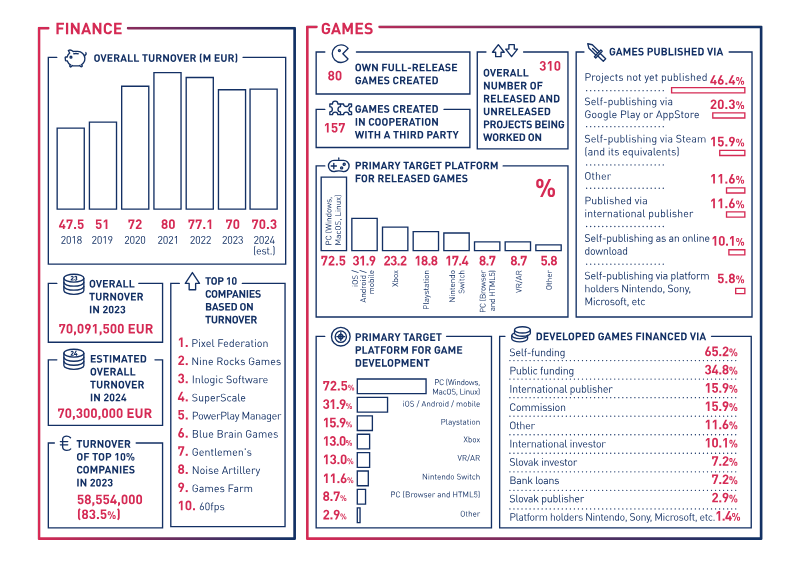 The 2024 Slovak Game Industry report provides a comprehensive overview of the nation’s game development sector, detailing its economic performance, workforce composition, and operational landscape as of December 31, 2024. The industry is characterized by a mix of established firms and newer entrants, with a primary focus on own-game development, which accounts for nearly 43% of activities, followed by outsourcing and co-development services. Geographically, the industry is concentrated in Bratislava and Košice, reflecting the urban centralization of technical talent and infrastructure.