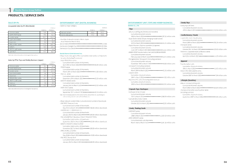 www.bandainamco.co.jp TABLE OF CONTENTS 01 Consolidated Business Performance / 03 Sales by IPs / Entertainment Unit (Digital Business) 04 Entertainment Unit (Toys and Hobby Business) 06 IP Production Unit / Amusement Unit Entertainment Unit (Digital Business) 07 Game App Market / Home Video Game Market Entertainment Unit (Toys and Hobby Business) 09 Plastic Model Market / Figure Market / Capsule Toy Market / 10 Candy Toy Market / Children’s Lifestyle (Sundries) Mar...