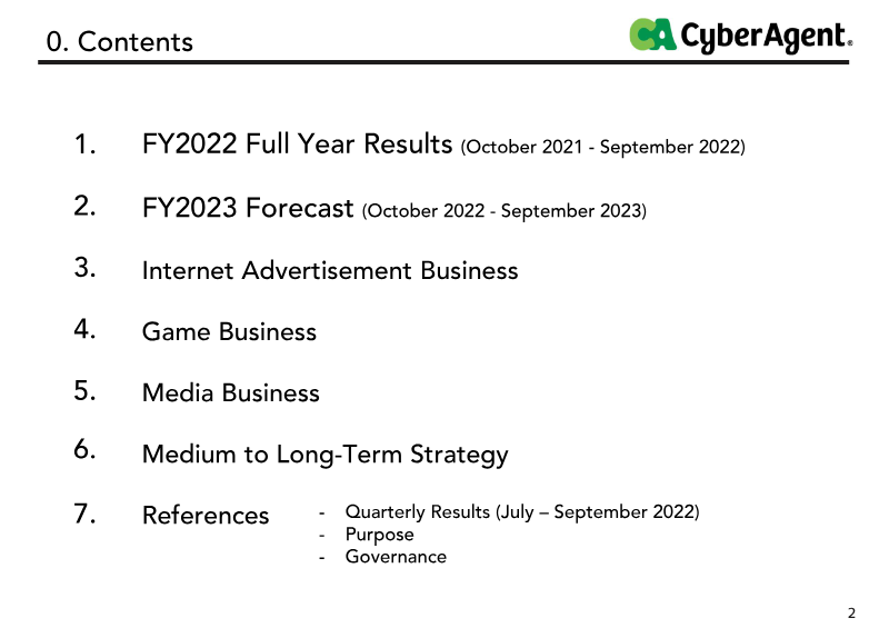 Performance varied significantly across business segments. The Media Business, which includes ABEMA and Ameba, saw a 34% increase in net sales to ¥33,485 million, driven largely by the distribution of the FIFA World Cup Qatar 2022. However, high content and distribution costs led to an expanded operating loss of ¥9,356 million for the segment. The Internet Advertisement Business remained a stable core, growing sales by 8.9% to ¥95,639 million, though operating income dipped 13% due to economic conditions. Conversely, the Game Business experienced a sharp decline, with sales falling 29.9% to ¥40,916 million and operating income dropping 69.6% to ¥5,212 million as major titles moved away from their anniversary peaks.