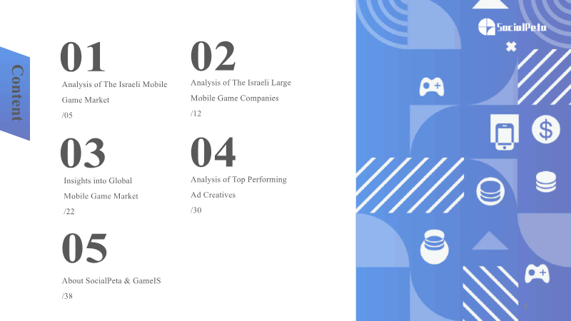 Backed by new insights from SocialPeta and GamelS, this report empowers global advertisers and publishers to learn more about the Israeli mobile game market. D eclaration SocialPeta With the assistance of the world's biggest advertising intelligence and analysis tool, SocialPeta Data Team has provided you with insights into the mobile advertising data of global games.