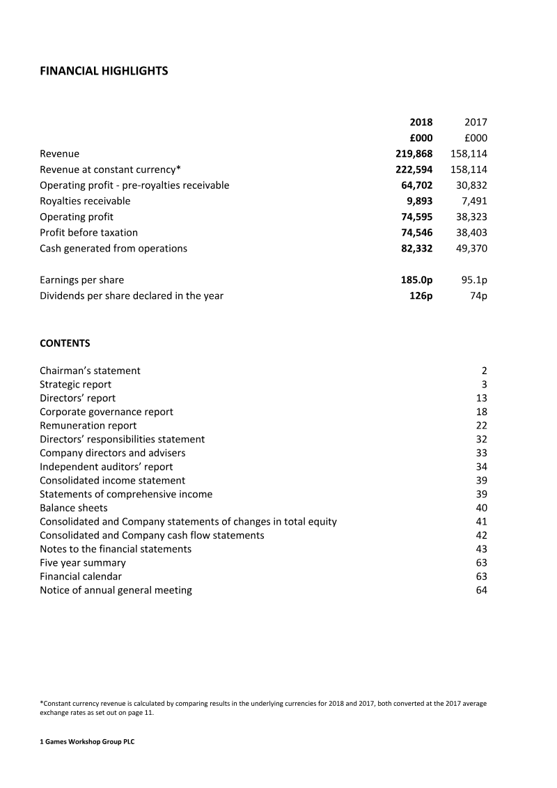 Games Workshop Group PLC (“Games Workshop” or the “Group”) announces its half-yearly results for the six months to 30 November 2014. Six months to Six months to Revenue £56.5m £60.5m Revenue at constant currency* £59.5m £60.5m Operating profit pre-royalties receivable £5.5m £6.6m Royalties receivable £0.7m £1.0m Operating profit ...