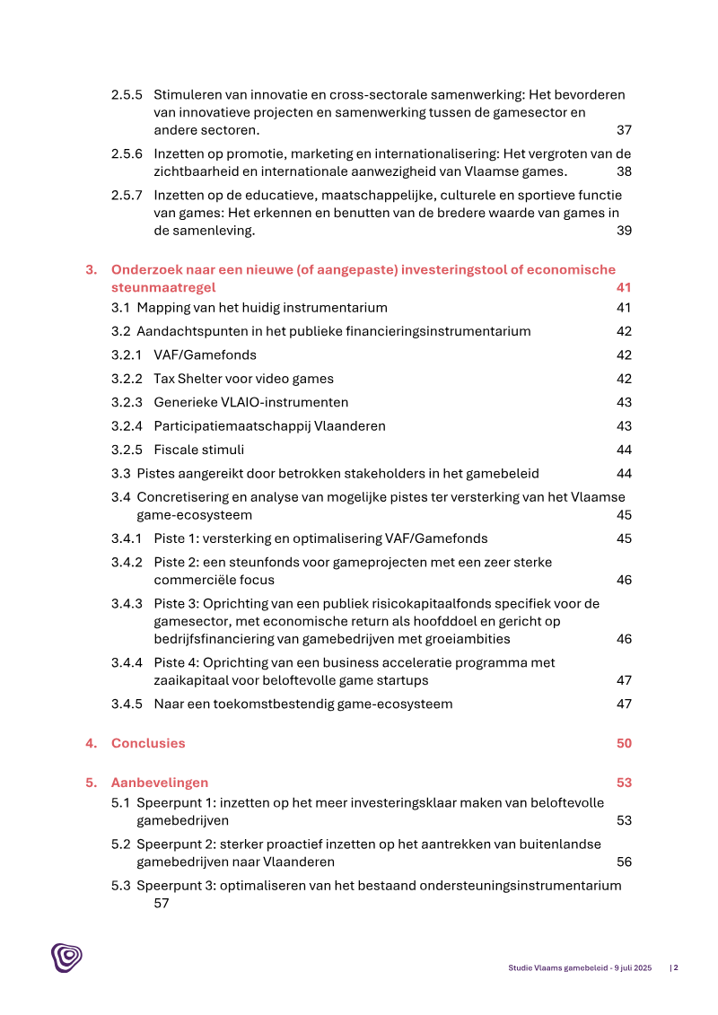 Ultimately, the objective for the 2026–2030 period is to transition the Flemish games sector into a more stable, economically diverse industry. This requires a dual approach: optimizing existing public funding to better support commercial growth and implementing new, flexible economic tools that bridge the gap between early-stage prototyping and market-ready maturity. By aligning educational outputs with industry needs, fostering cross-sectoral collaboration, and prioritizing business development over isolated project subsidies, the region can mitigate the risks of brain drain and build a resilient, internationally recognized gaming hub.