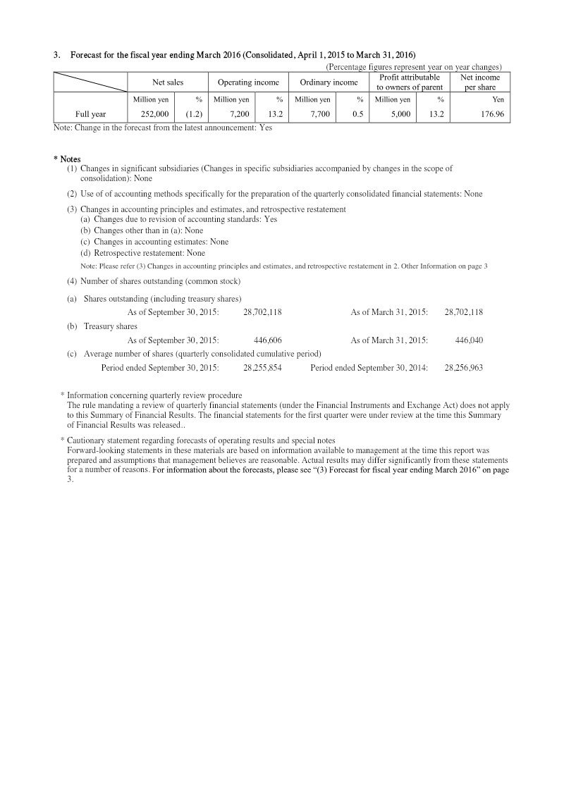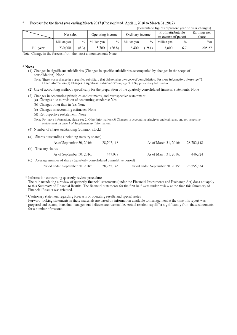 The financial position of the group remained stable, with total assets reaching 116,658 million yen as of September 30, 2013, up from 111,888 million yen at the end of the previous fiscal year. The equity ratio stood at 43.1%. Cash flow from operating activities provided 3,772 million yen, supporting the company's liquidity. Management maintained its previously announced full-year forecast, projecting net sales of 247,000 million yen and net income of 2,200 million yen for the fiscal year ending March 31, 2014. These results reflect a broader economic recovery in Japan, characterized by increased corporate earnings and consumer spending, despite ongoing challenges in the global electronics market.