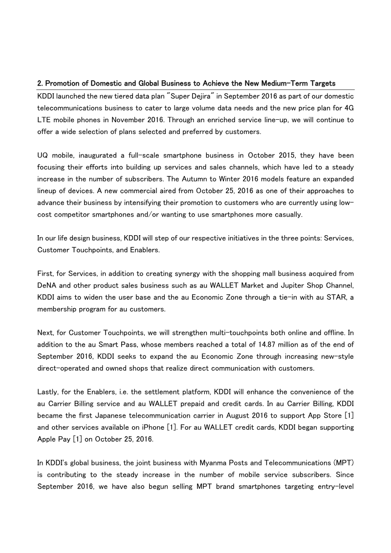 The company’s strategic focus centers on its "Life Design" initiative, which aims to expand the "au Economic Zone" by integrating shopping, financial services, and membership programs like au STAR. By leveraging multi-touchpoints—including both online platforms and direct-operated retail stores—KDDI seeks to diversify revenue beyond traditional telecommunications. Key enablers for this strategy include the expansion of au WALLET credit card services and the integration of carrier billing with major digital platforms like the App Store and Apple Pay.