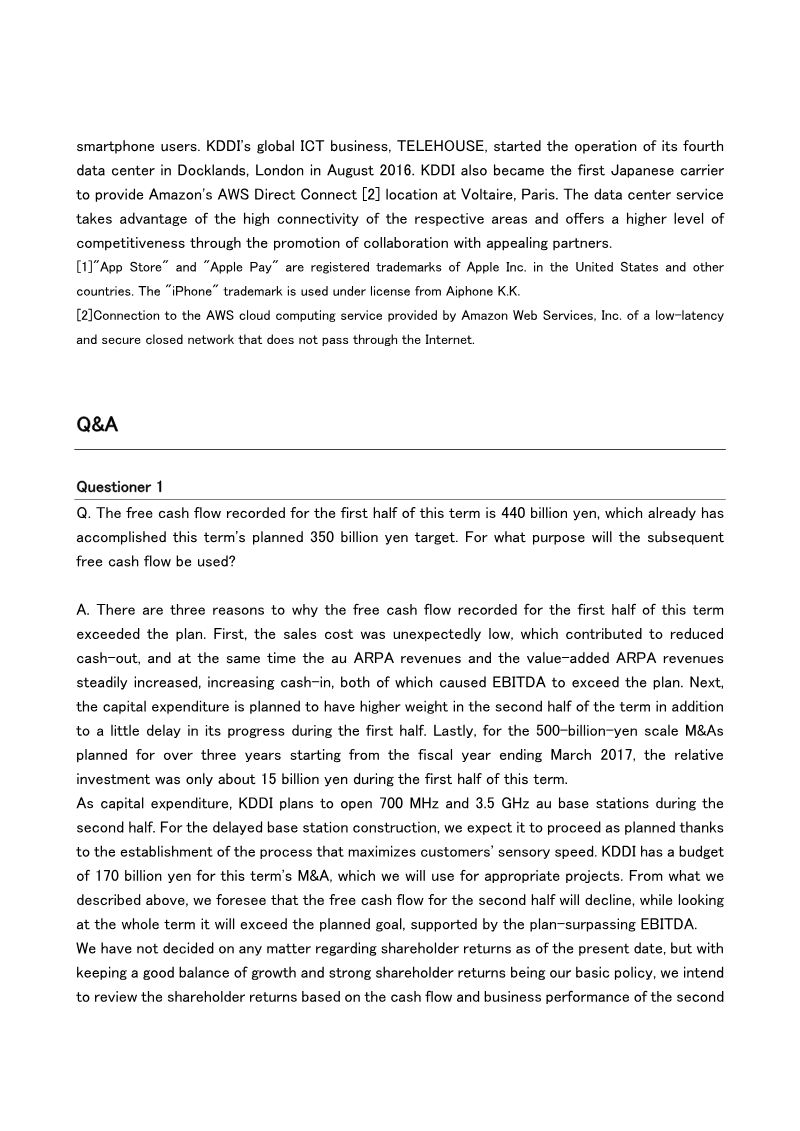 Performance Highlights and Q&A: First Half of the Fiscal Year Ending March 2017 (Japan)