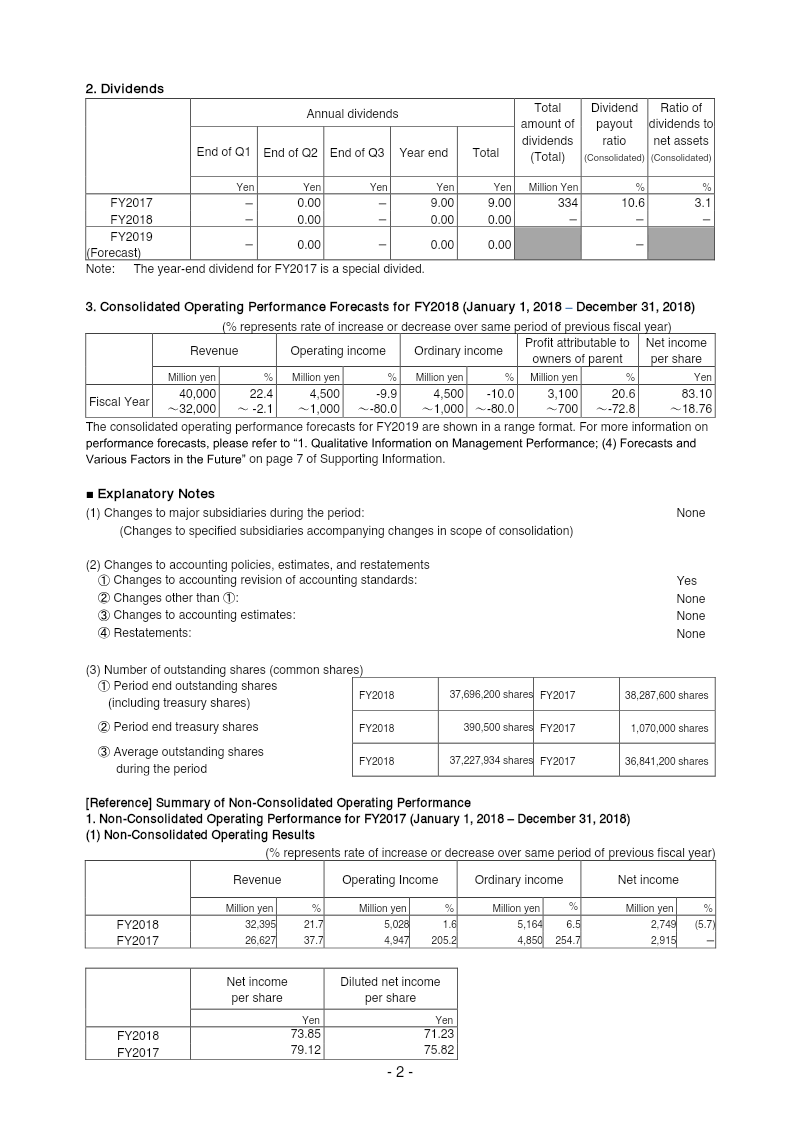 KLab Inc. reported consolidated financial results for the first nine months of fiscal year 2019 (January 1–September 30), showing a decline in revenue and profitability compared with the same period of FY2018. Total consolidated revenue fell 10.3 % to ¥22,377 million, driven by weaker performance of key titles such as *Love Live! School Idol Festival* and *Captain Tsubasa: Dream Team*, offset by releases of *Magatsu Wahrheit* and *Love Live! School Idol Festival ALL STARS*. Operating income dropped 57.1 % to ¥1,711 million, ordinary income fell 61.8 % to ¥1,569 million, and profit attributable to owners of parent decreased 53.7 % to ¥1,216 million. Net income for the period was ¥1,186 million, a 55 % decline from ¥2,629 million in FY2018. Comprehensive income also contracted sharply to ¥1,367 million from ¥2,635 million. Total assets increased to ¥23,415 million, largely due to higher accounts receivable and software assets, while total liabilities rose to ¥6,125 million, driven by a significant increase in long‑term debt. Net assets grew to ¥17,290 million, supported by retained earnings gains despite a reduction in treasury stock. The equity ratio fell from 75.1 % to 69.2 %. KLab adopted a range‑based forecast methodology for FY2019, revising its operating performance outlook to ¥1,750 million in operating income, ¥1,600 million in ordinary income, and ¥1,200 million in profit attributable to owners of parent. No dividends were declared for FY2019. The report covers the Japanese market, reflects Japanese GAAP, and is based on consolidated financial statements with no changes in accounting policies or restatements during the period.