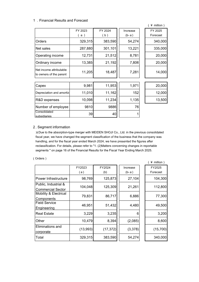 The company operates across several key segments, including Power Infrastructure, Public, Industrial & Commercial Sector, Mobility & Electrical Components, and Field Service Engineering. The Power Infrastructure and Public, Industrial & Commercial sectors were primary drivers of growth, with both segments seeing substantial increases in order volume. While the Mobility & Electrical Components segment experienced a decline in net sales, it achieved a notable turnaround in operating income, moving from 196 million yen in the previous year to 1.1 billion yen. The Field Service Engineering segment also demonstrated strong performance, contributing 9.9 billion yen in operating income.