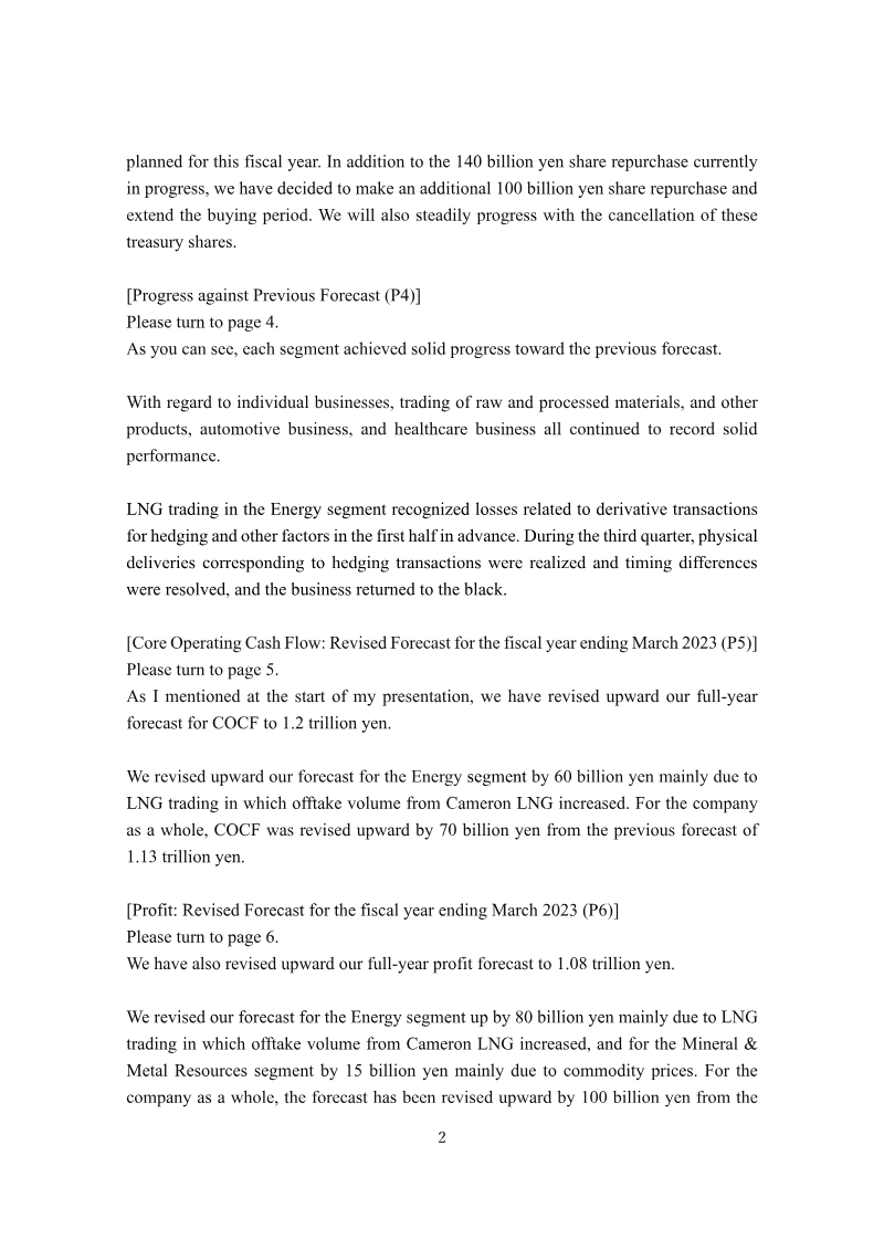 Mitsui’s financial results for the first nine months of the fiscal year ending March 2023 demonstrate strong performance across a globally diversified business portfolio, resulting in record-level Core Operating Cash Flow (COCF) and profit. Driven by robust results in energy, automotive, and commodity trading, the company has revised its full-year profit forecast upward to 1.08 trillion yen and its COCF forecast to 1.2 trillion yen. This positive momentum has prompted an increase in the annual dividend to 135 yen per share and the authorization of an additional 100 billion yen in share repurchases.