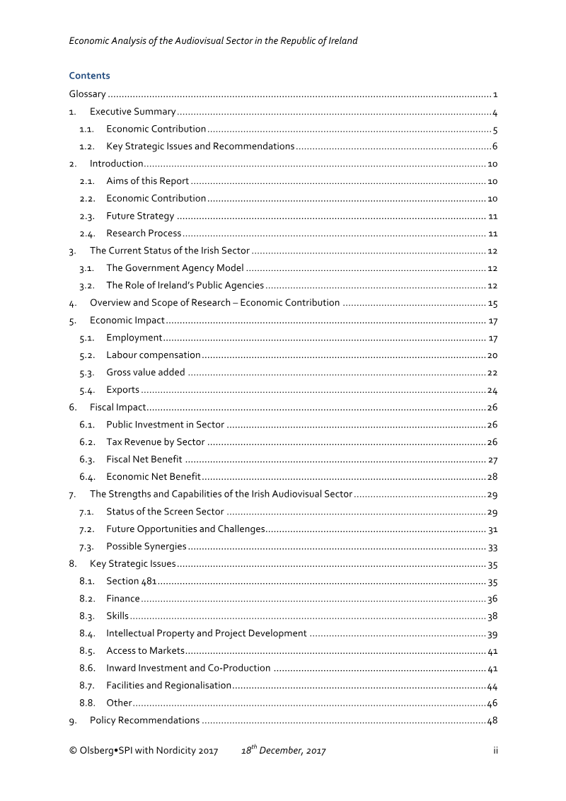 A Report from Olsberg SPI with A Report from Olsberg•SPI with Economic Analysis of the Audiovisual Sector in the Republic of Ireland Glossary 1 1. Executive Summary 4 1.1. Economic Contribution 5 1.2. Key Strategic Issues and Recommendations 6 2. Introduction 10 2.1.