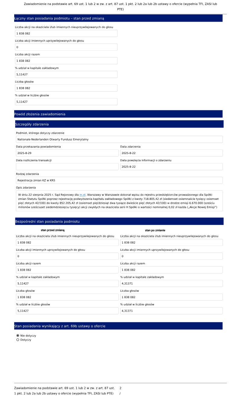 Raport bieżący nr 40/2025: Podsumowanie kosztów subskrypcji akcji serii H