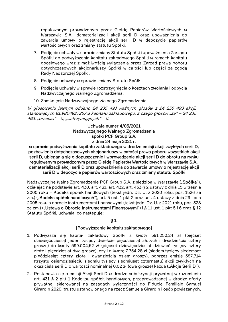 The report announces a change in the publication date for PCF Group S.A.’s consolidated quarterly report covering the first quarter of 2022. The board, acting under § 80(2) of the Polish Ministry of Finance regulation dated 29 March 2018, informs stakeholders that the report will now be released on 30 May 2022 instead of the previously scheduled 27 May 2022. This adjustment follows the earlier current report No. 2/2022 issued on 20 January 2022, which had set the original publication date. The notice is issued on 12 May 2022 and serves to update investors, regulators, and other interested parties about the revised timeline. No additional data, financial figures, or analytical findings are presented in this communication; it functions solely as a procedural update regarding the reporting schedule for the PCF Group’s first‑quarter results.