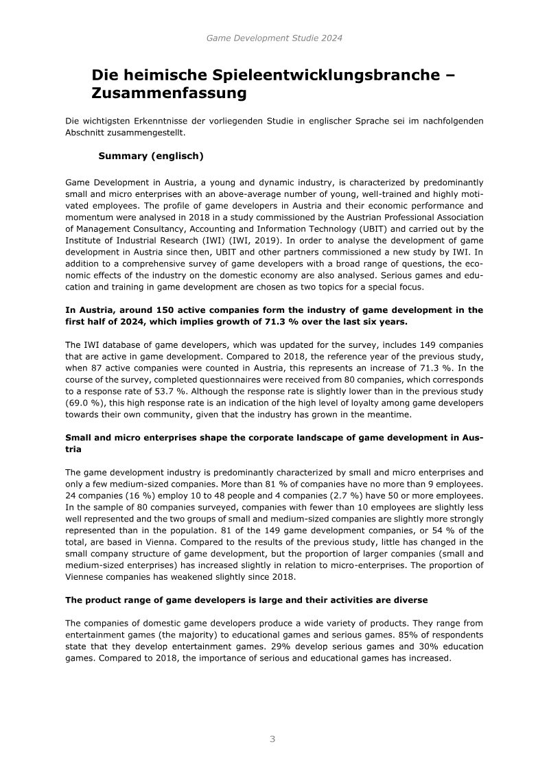Game Development Studie 2024: Die wirtschaftliche Bedeutung der österreichischen Spieleentwicklungsbranche, ihre Dynamiken und Einflüsse auf die Gesamtwirtschaft