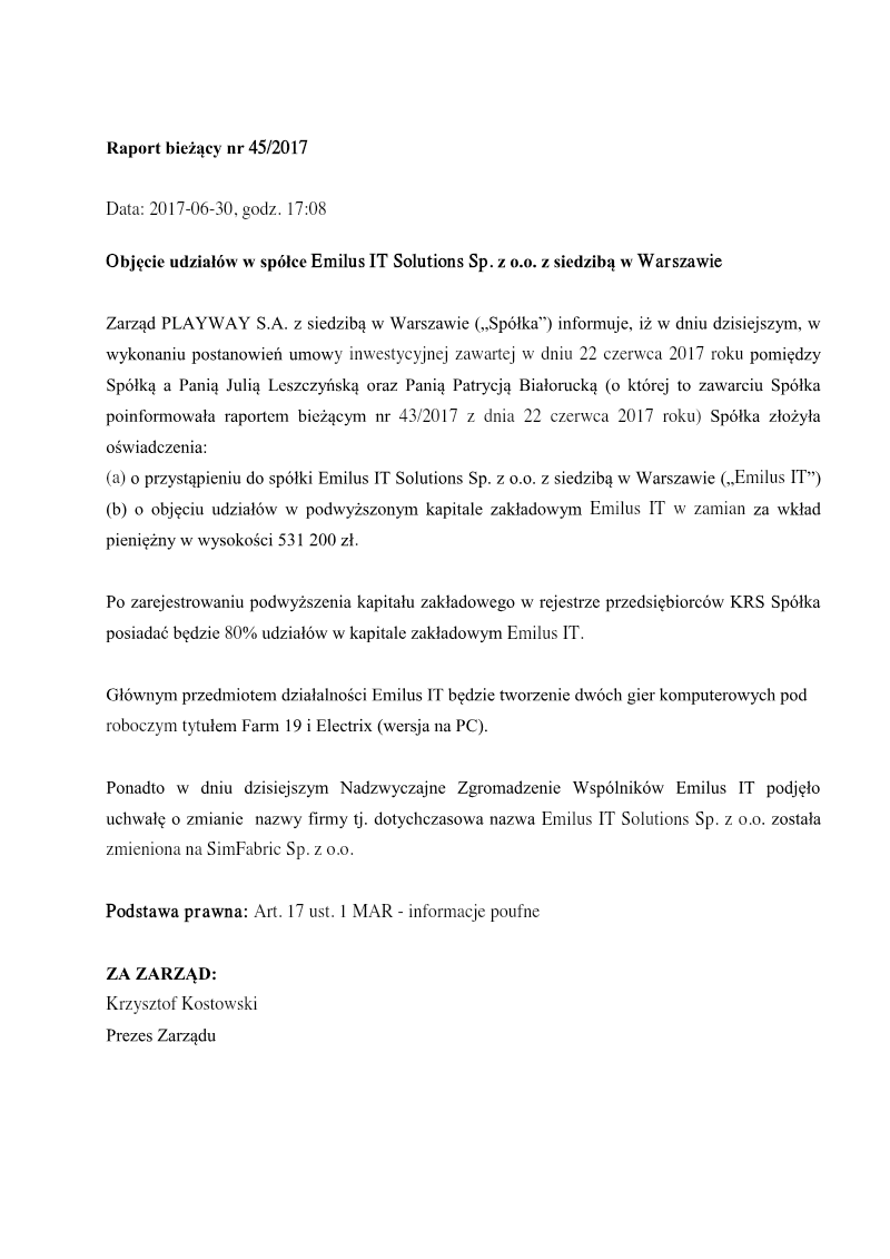 Raport Bieżący Nr 40/2017
